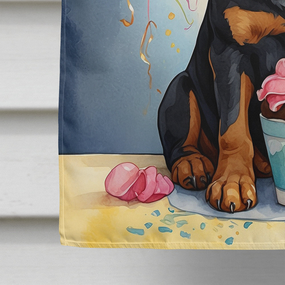 House Flag featuring breed specific Rottweiler artwork. Celebrate Birthday with this Birthday Large Flag. Presenting our Heavy Duty Polyester House Size Decorative Sleeve Pole Flag, a vibrant addition to enhance the aesthetic appeal of your home. This large decorative flag, measuring approximately 28 x 40 inches, offers ample coverage and visibility. Each flag is meticulously sewn and made individually, ensuring a unique piece that may slightly vary in size. It's a sleeve pole flag, designed to fit a standard decorative flag pole effortlessly. Please note that the flag pole and bracket are not included and should be purchased separately. What sets our flag apart is its dual-sided print. The design is mirrored on both sides of the fabric, allowing for uniform visibility regardless of the angle. Printed in full color, our flag showcases vibrant hues that truly stand out. To ensure lasting vibrancy and durability, the dyes are heat-set into the fabric. This ensures your flag remains bright and captivating through various weather conditions. Elevate the look of your home with our Heavy Duty Polyester House Size Decorative Sleeve Pole Flag!