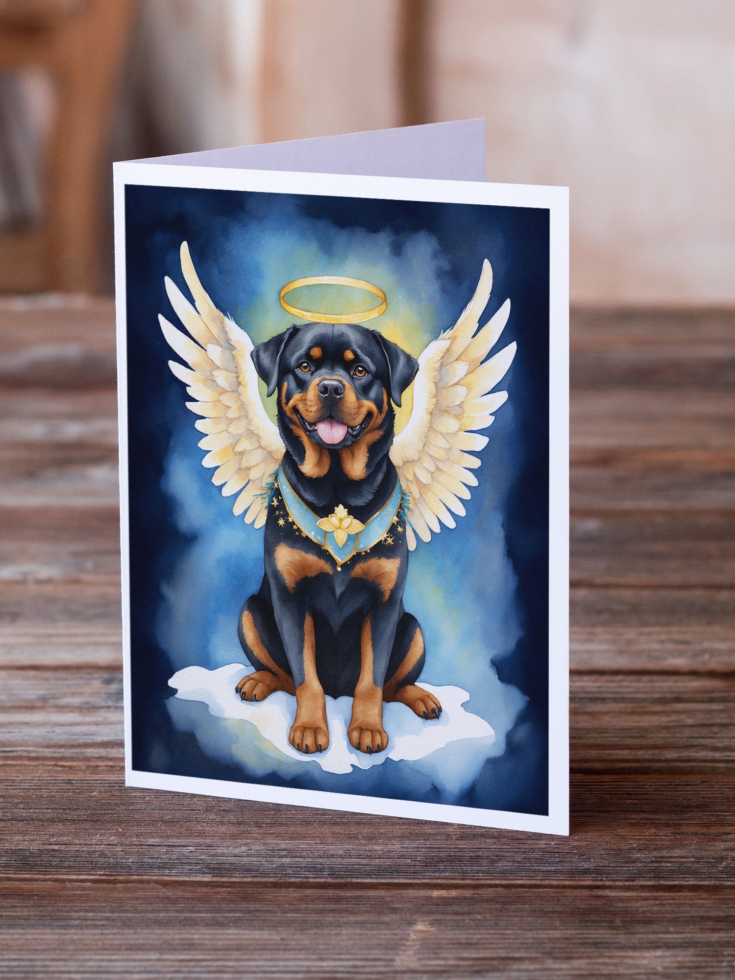 Decorate your space with our Christmas Rottweiler artwork on a . Celebrate special moments with Caroline's Treasures Printed Greeting Card Pack. This pack includes eight beautifully folded 5x7 cards, accompanied by eight matching white envelopes. With blank interiors, these cards provide ample space for your personalized messages and heartfelt holiday greetings. Each card features captivating full-color artwork, meticulously printed in our facility on high-quality 80 lb cover stock or 216 GSM. The super smooth finish of the white cards enhances the visual impact of the artwork, creating a truly stunning presentation. Designed by our talented in-house artists or licensed artists, the artwork on these cards showcases their creativity and attention to detail. From vibrant illustrations to captivating designs, each card tells its own unique story. Whether it's for birthdays, anniversaries, holidays, or any special occasion, Caroline's Treasures Greeting Card Pack is the perfect way to convey your heartfelt sentiments. Share joy, love, and warm wishes with these exquisite cards and make every moment unforgettable.