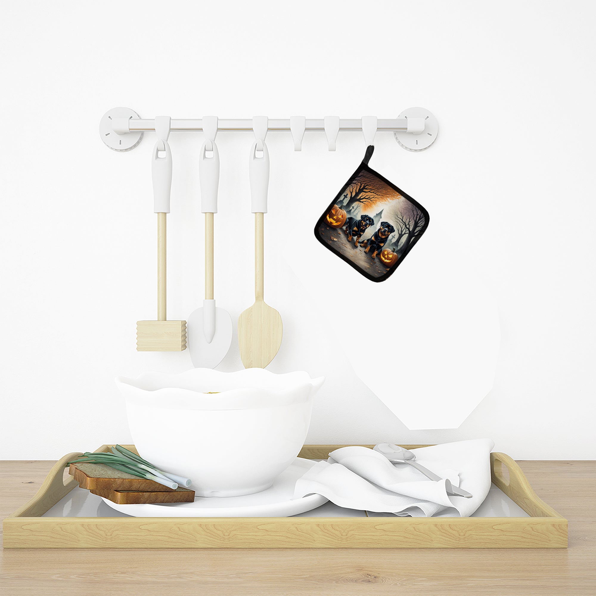 Rottweiler Spooky Halloween Pot Holders - Set of 2 Decorative Kitchen Helpers | Made in the USA