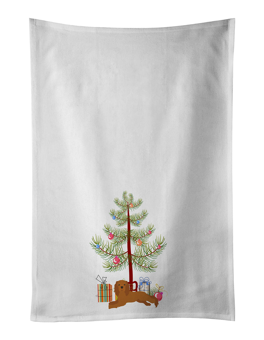 Decorate your space with our Christmas Cavalier King Charles Spaniel artwork on a Kitchen Cotton Towels. Spruce up your kitchen decor with Caroline's Treasures Decorative White Kitchen Towel Set. This set of two dish towels showcases beautiful artwork from one of our talented artists, making them both practical and visually appealing. These towels are crafted from 100% cotton, offering excellent absorbency and durability, making them ideal for any kitchen task. Each white towel measures 19 inches by 28 inches, providing ample coverage for drying dishes or wiping up spills. The standout feature of these towels is the full-color artwork design printed on each one. They can serve as a vibrant accent in your kitchen, turning a functional item into a delightful piece of decor. When it comes to care, these towels are machine washable in cold water and can be dried on low heat. Remember to always use a pressing cloth when pressing the design, and avoid using bleach on the decorated towel. The Decorative White Kitchen Towel Set makes a great gift or a stylish addition to your own kitchen.