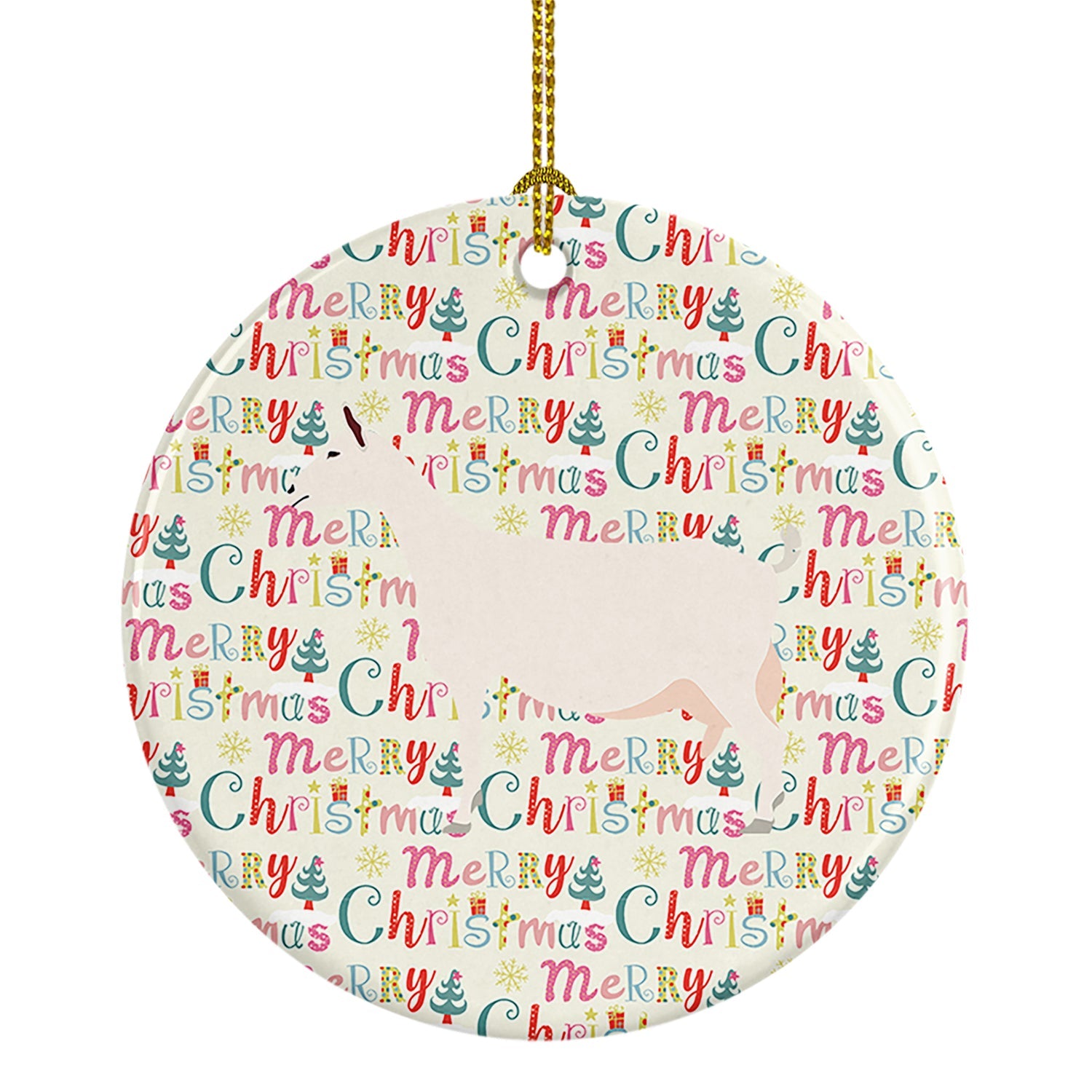Decorate your space with our Christmas Saanen Goat artwork on a Ornament. Add a touch of personalized charm to your Christmas tree this holiday season with our Ceramic Ornament. Measuring 2.8125 inches in diameter, this round porcelain ornament beautifully reflects your festive lights, enhancing your holiday decor. The gloss surface sets off the vibrant, full-color artwork contributed by one of our talented artists, bringing a pop of color and joy to your tree. This Ceramic Ornament doesn't stop at being merely decorative. The white back is designed for personalization. Write a heartfelt message, mark a special year, or inscribe a date with a paint pen or a permanent marker to create a treasured memento. Please ensure you allow any personalization to dry thoroughly before handling to maintain the pristine finish. Included with the ornament is a delicate gold cord for easy hanging. Made in the USA, this Ceramic Ornament makes an exceptional gift for a pet sitter, teacher, family member, or anyone you wish to share a little Christmas magic with. With its blend of style, charm, and personal touch, it's a meaningful addition to any Christmas tree.
