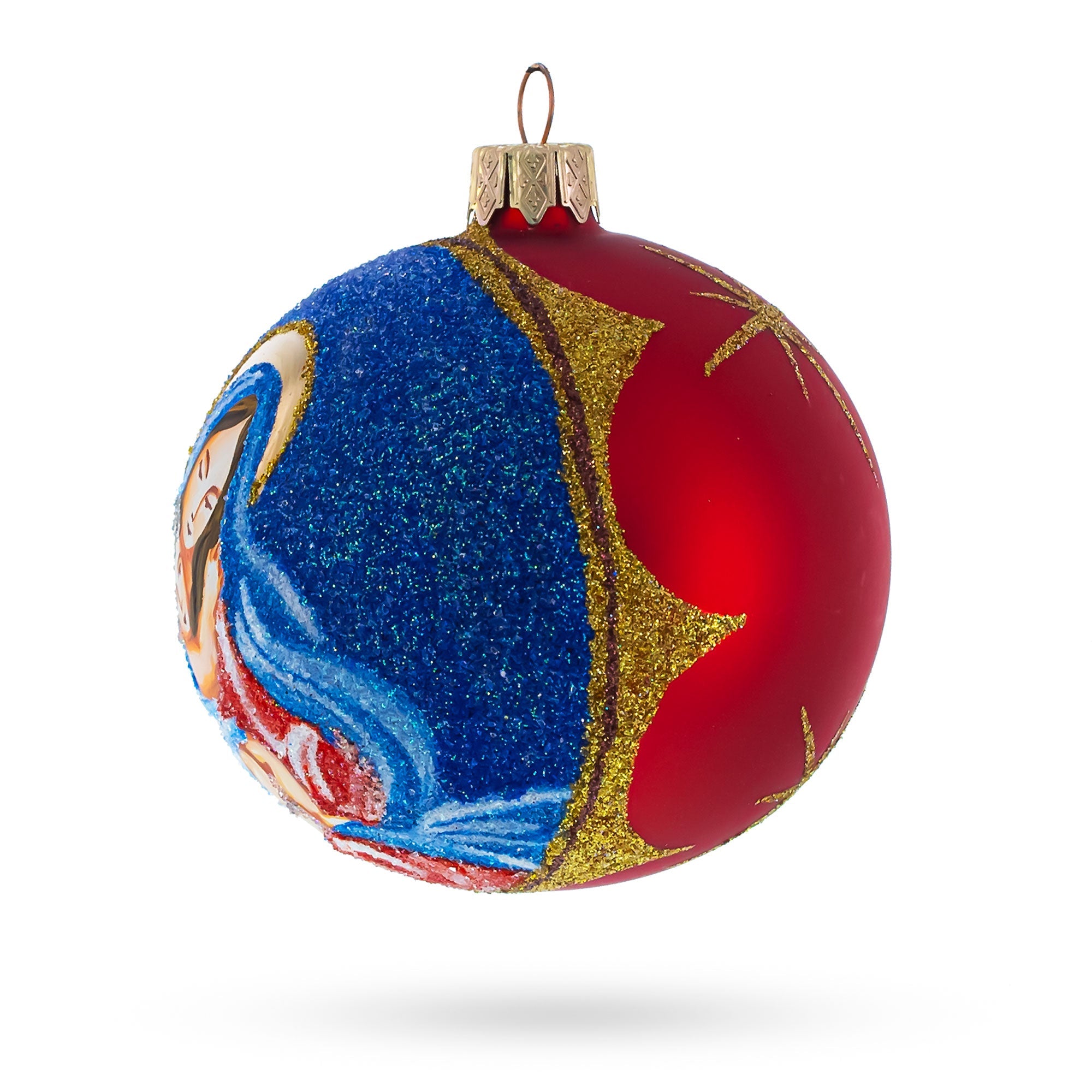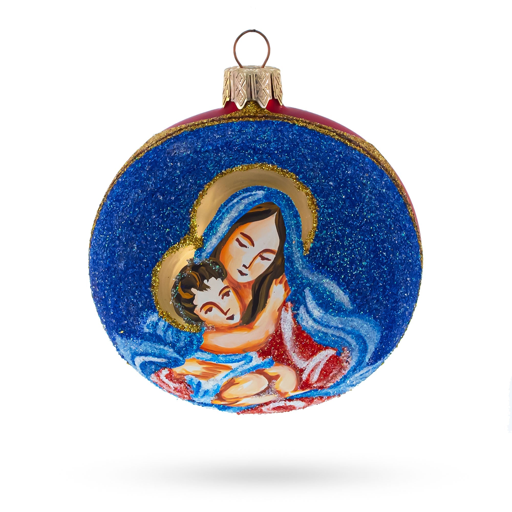 Sacred Virgin Mary Holding Jesus Glass Ball Christmas Ornament 3.25 Inches