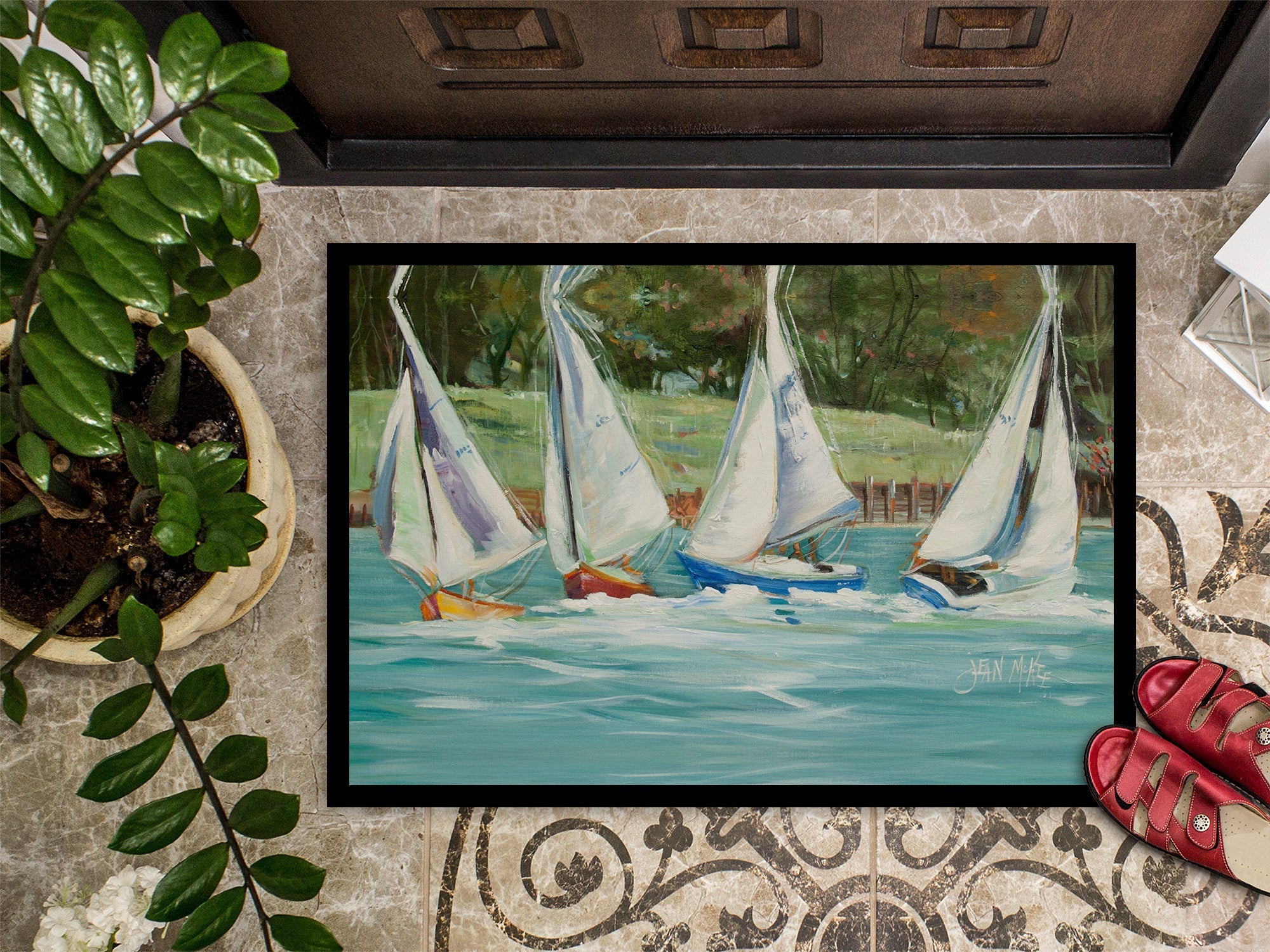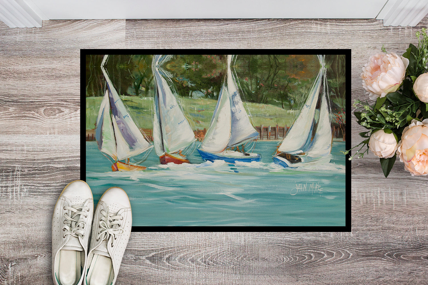 Sailboats on the bay Doormat - 24x36 Decorative Floor Mat – Indoor/Outdoor Rug with Artistic Flair JMK1035JMAT