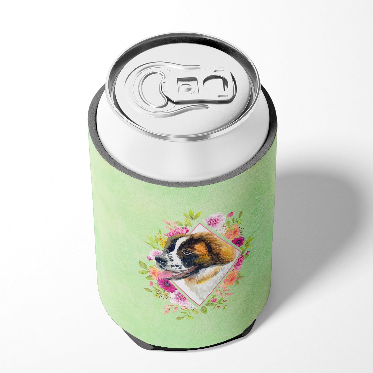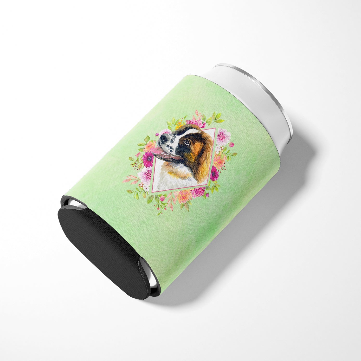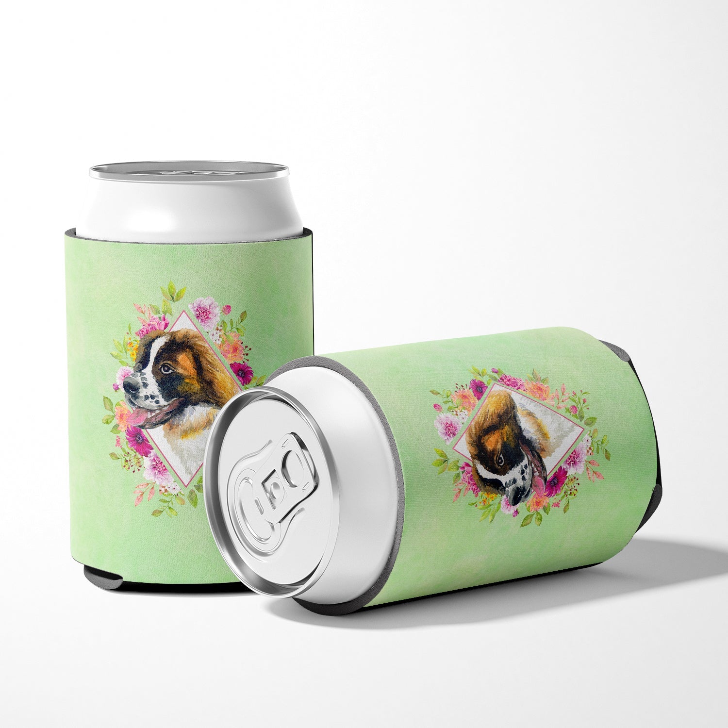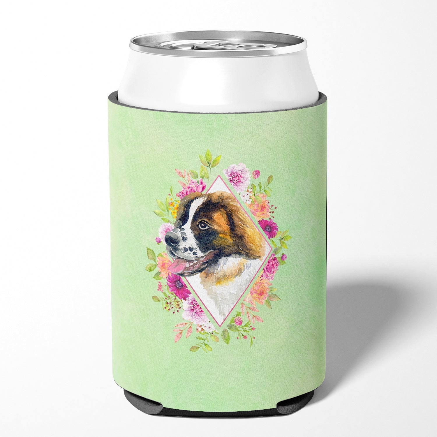 Saint Bernard #2 Green Flowers Can or Bottle Hugger CK4347CC