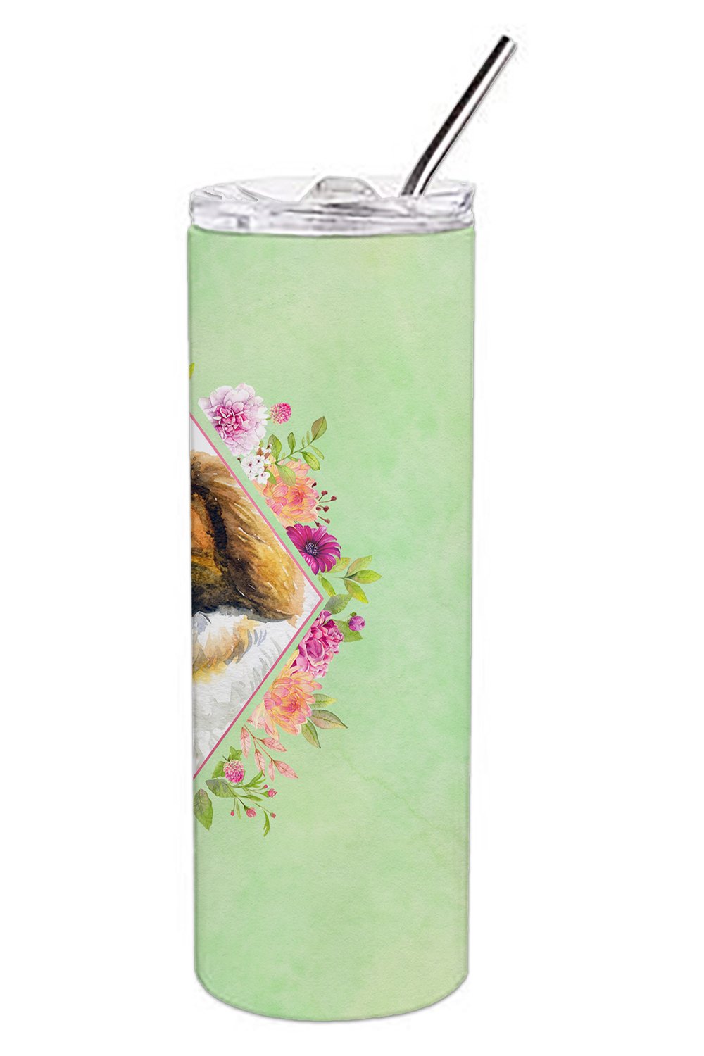 Saint Bernard #2 Green Flowers Double Walled Stainless Steel 20 oz Skinny Tumbler CK4347TBL20