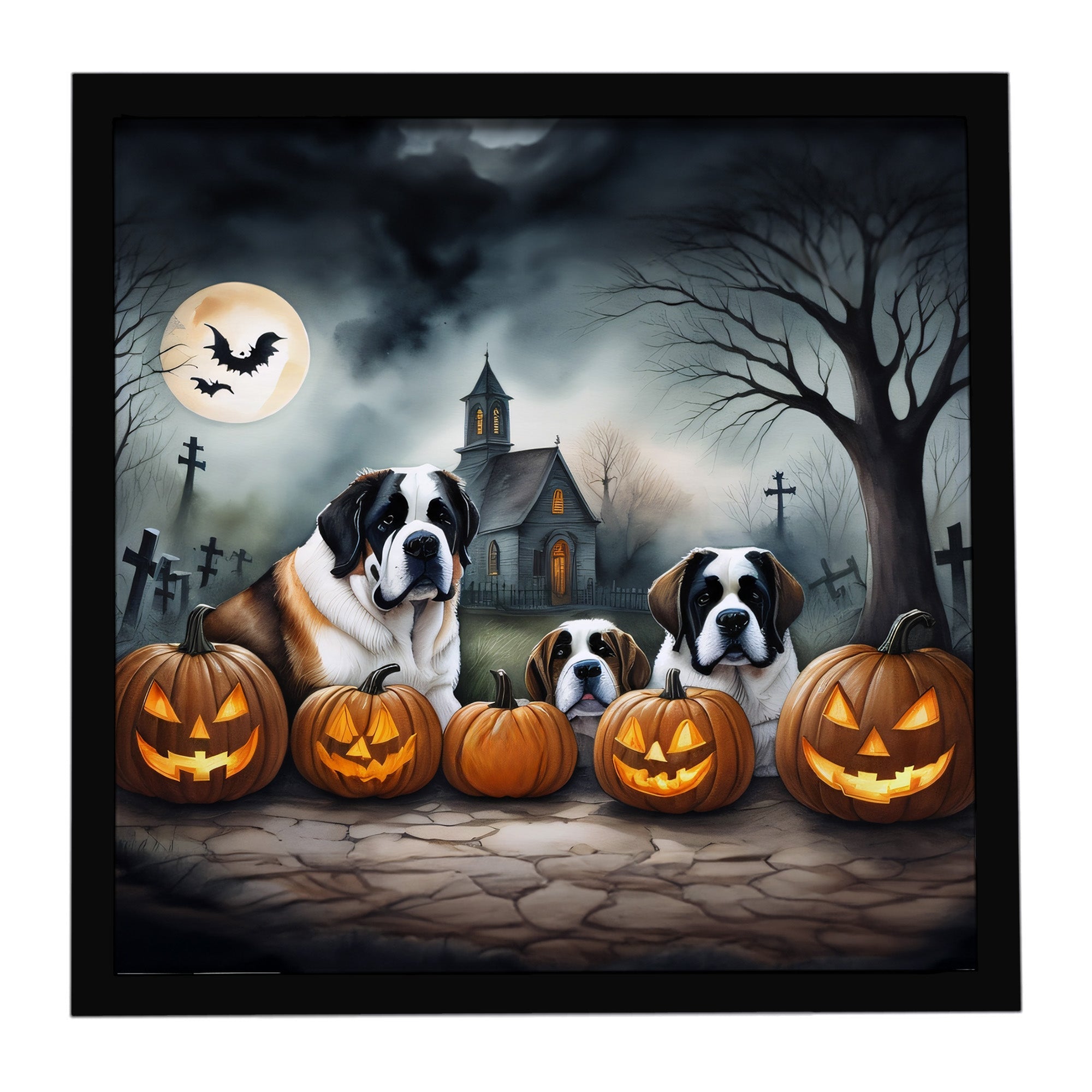 Framed Metal Print featuring breed specific Saint Bernard artwork. Celebrate Halloween with this Halloween Framed Metal Print. Looking for wall art that’s stylish, safe, and made to last? Our 8x8 Framed Metal Prints are designed with modern living in mind. Each piece features original artwork printed on durable aluminum, set in a sleek frame that measures 3/4 inch deep for a clean, contemporary finish. Unlike glass prints, these are lightweight, shatter-free, and family-safe. Perfect for kitchens, bathrooms, or covered porches where traditional décor might not hold up. The built-in sawtooth hanger molded into the back makes it easy to hang right out of the box—just use your own nails or screws. Cleaning is simple too: a quick wipe with a damp cloth and mild soap keeps your artwork looking vibrant. Proudly made in Alabama, every print supports our community of artists while adding personality and charm to your home.
