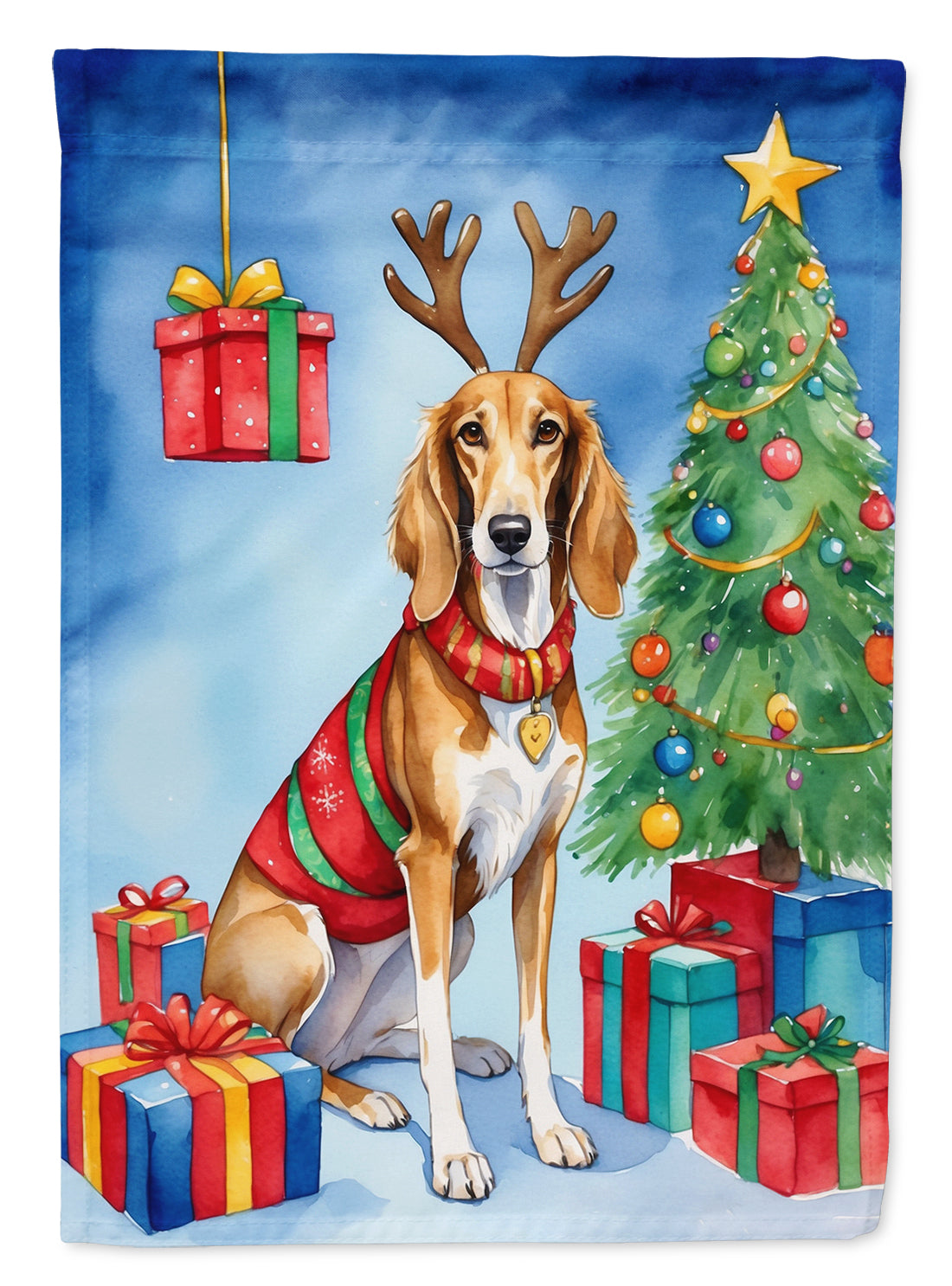 Garden Flag featuring breed specific Saluki artwork. Celebrate Christmas with this Christmas Garden Flag. Enhance the beauty of your garden, patio, or yard with Caroline's Treasures Decorative Garden Flag, proudly made in the USA. Crafted from two pieces of thick, double-sided polyester fabric, this 2-ply garden flag is designed to withstand various weather conditions, making it water-resistant and weatherproof. Featuring correctly readable words on both sides, this garden flag offers a delightful visual experience from any angle. With its heavier weight, it stands out among other garden flags, ensuring stability and durability even in wind, rain, and snow. Measuring approximately 11 1/4 inches by 15 1/2 inches, this flag allows you to personalize your outdoor decor. It comes with a 1 1/2-inch sleeve sewn in, allowing easy attachment to any standard garden flag stand or garden size porch hanger (sold separately). Make a statement in your outdoor space with Caroline's Treasures Decorative Garden Flag, a vibrant and high-quality flag that adds color and personality to your surroundings. Proudly made in the USA, it's a symbol of quality craftsmanship and attention to detail.