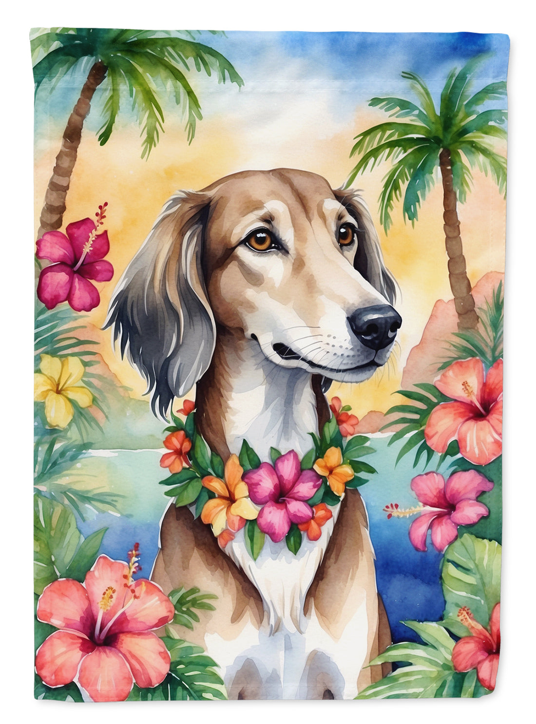 Decorate your space with our Saluki artwork on a Garden Flag. Bring a bit of Summer into your home with a Summer Garden Flag. Enhance the beauty of your garden, patio, or yard with Caroline's Treasures Decorative Garden Flag, proudly made in the USA. Crafted from two pieces of thick, double-sided polyester fabric, this 2-ply garden flag is designed to withstand various weather conditions, making it water-resistant and weatherproof. Featuring correctly readable words on both sides, this garden flag offers a delightful visual experience from any angle. With its heavier weight, it stands out among other garden flags, ensuring stability and durability even in wind, rain, and snow. Measuring approximately 11 1/4 inches by 15 1/2 inches, this flag allows you to personalize your outdoor decor. It comes with a 1 1/2-inch sleeve sewn in, allowing easy attachment to any standard garden flag stand or garden size porch hanger (sold separately). Make a statement in your outdoor space with Caroline's Treasures Decorative Garden Flag, a vibrant and high-quality flag that adds color and personality to your surroundings. Proudly made in the USA, it's a symbol of quality craftsmanship and attention to detail.