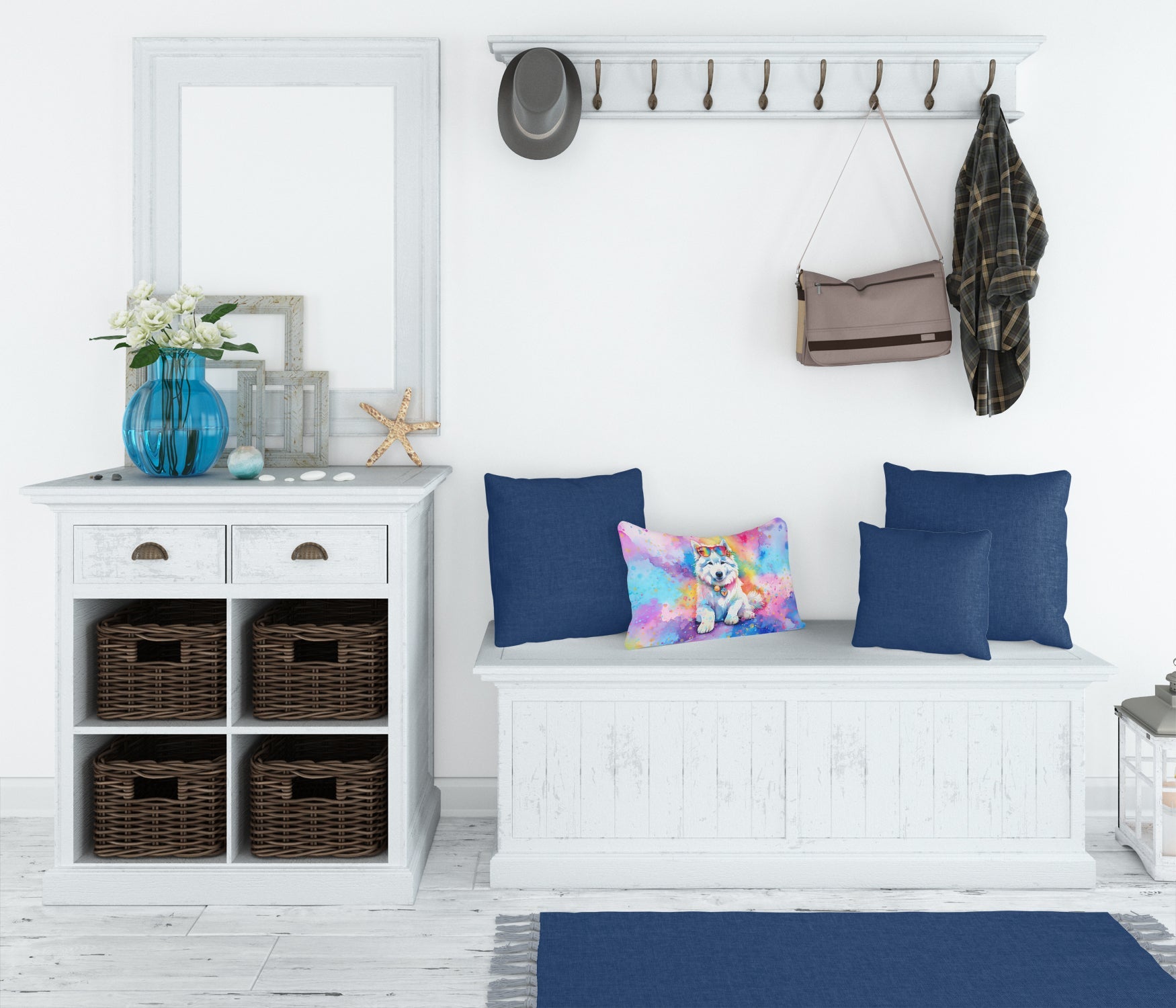 Decorate your space with our Samoyed artwork on a Pillow. Bring a bit of Summer into your home with a Summer Pillow. Embrace the fusion of comfort and style with Caroline's Treasures Fabric Decorative Pillow. This 12x16 inch outdoor pillow is designed to complement your patio furniture, adding a splash of color and artistry to your outdoor setting. Constructed with a 100% Polyester Fabric pillow sham filled with a plush pillow form, this cushion is as comfortable as it is durable. Our outdoor pillow utilizes a novel fabric, meticulously woven for enhanced water resistance. This soft canvas material is equally suited for your indoor couch as well as outdoor settings such as the patio, porch, or veranda. To ensure enduring vibrance, we employ colorfast dyes resistant to fading even when subjected to weather elements. The making of this pillow involves the delicate sewing together of three fabric pieces to create a sham, into which a polyester insert is carefully placed. The result is an overstuffed pillow that tenaciously holds its shape. With both the sham and the pillow insert crafted in the United States, these handmade pillows are a testament to superior local craftsmanship. Note that as these pillows are handmade, sizes may slightly vary, enhancing their unique appeal. Enjoy comfort in style with Caroline's Treasures Fabric Decorative Pillow.