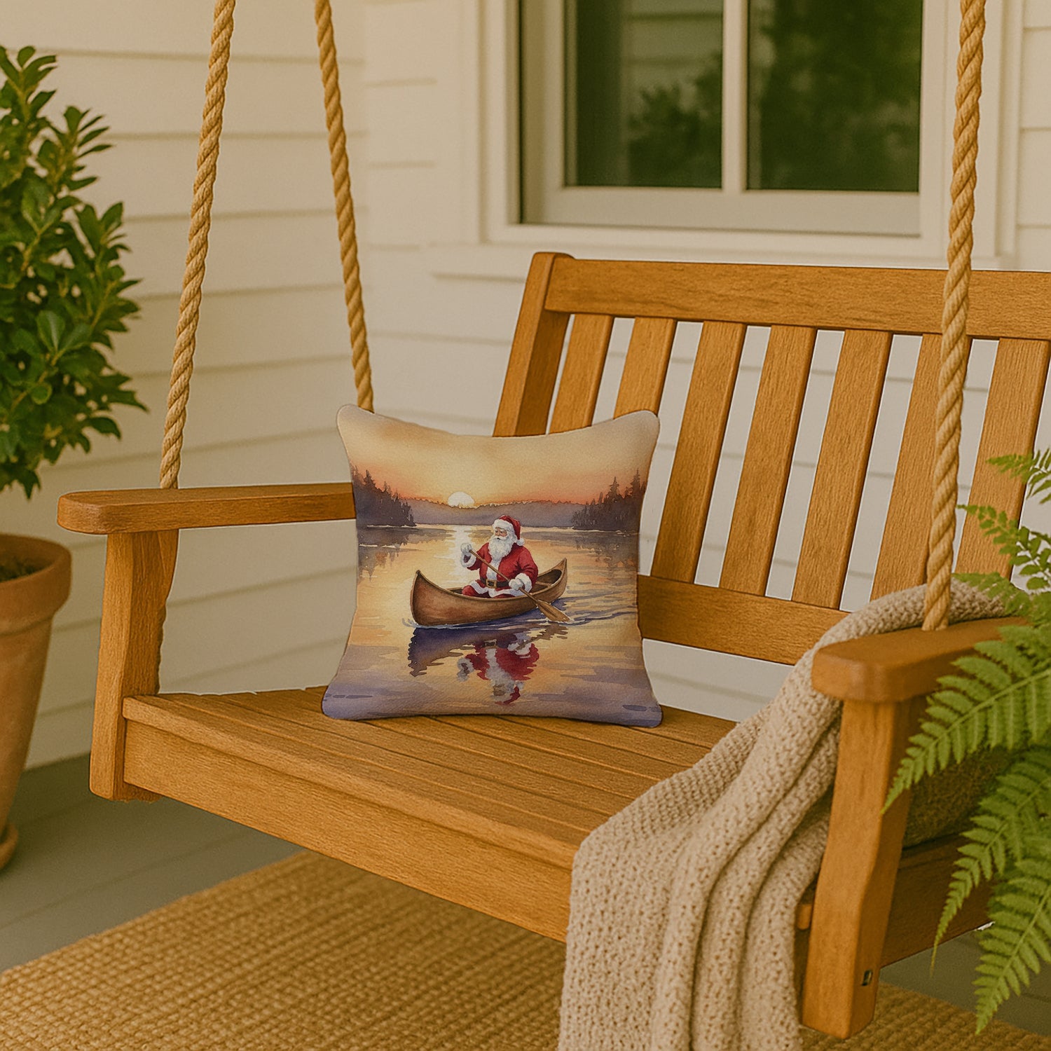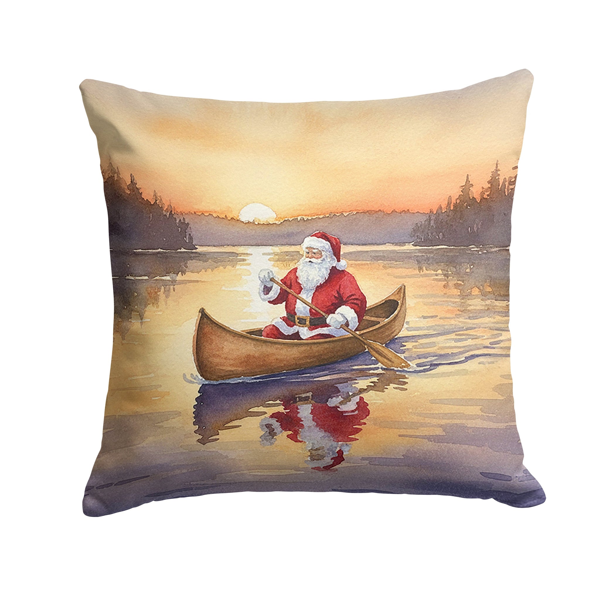 Santa Claus Canoeing at Sunset Christmas Throw Pillow