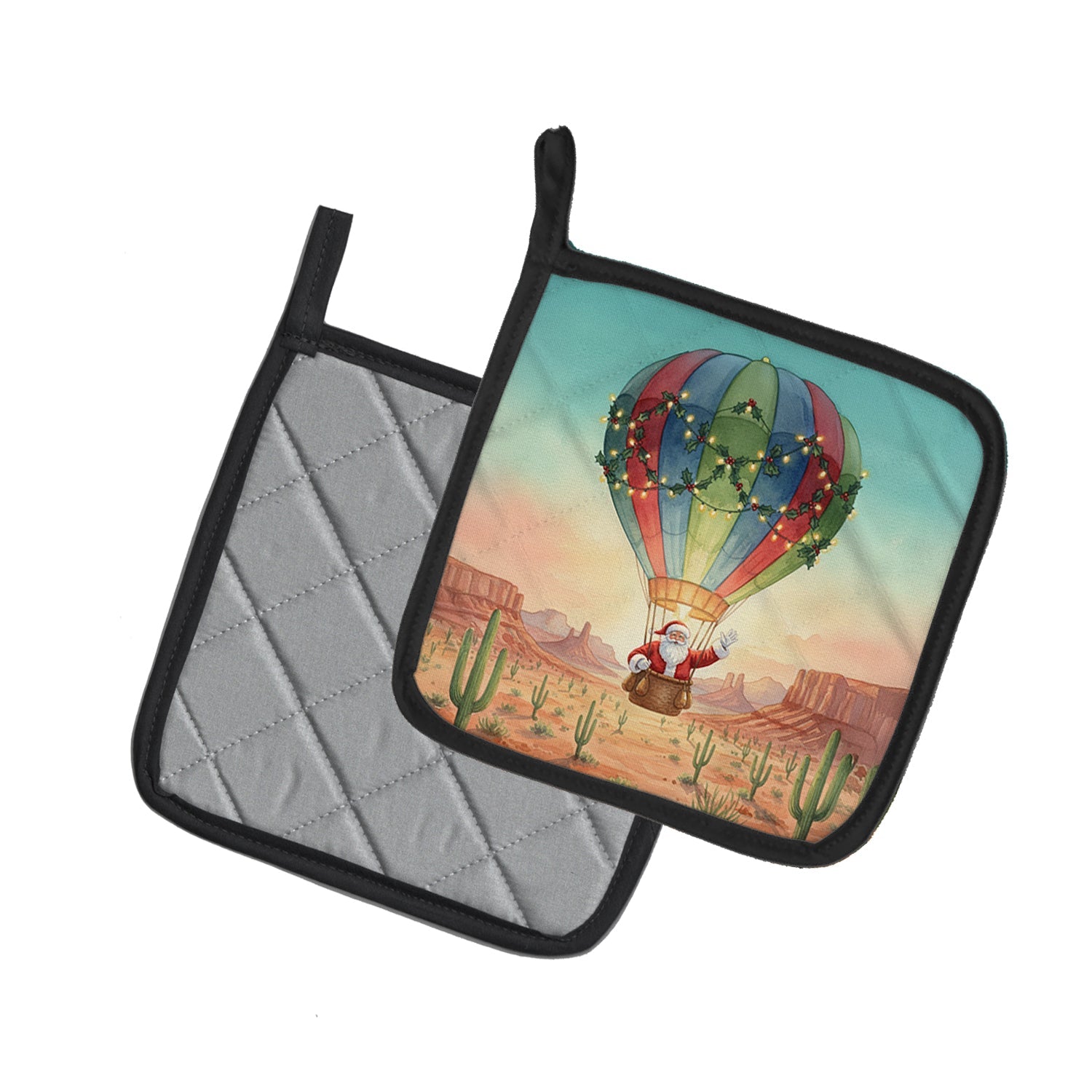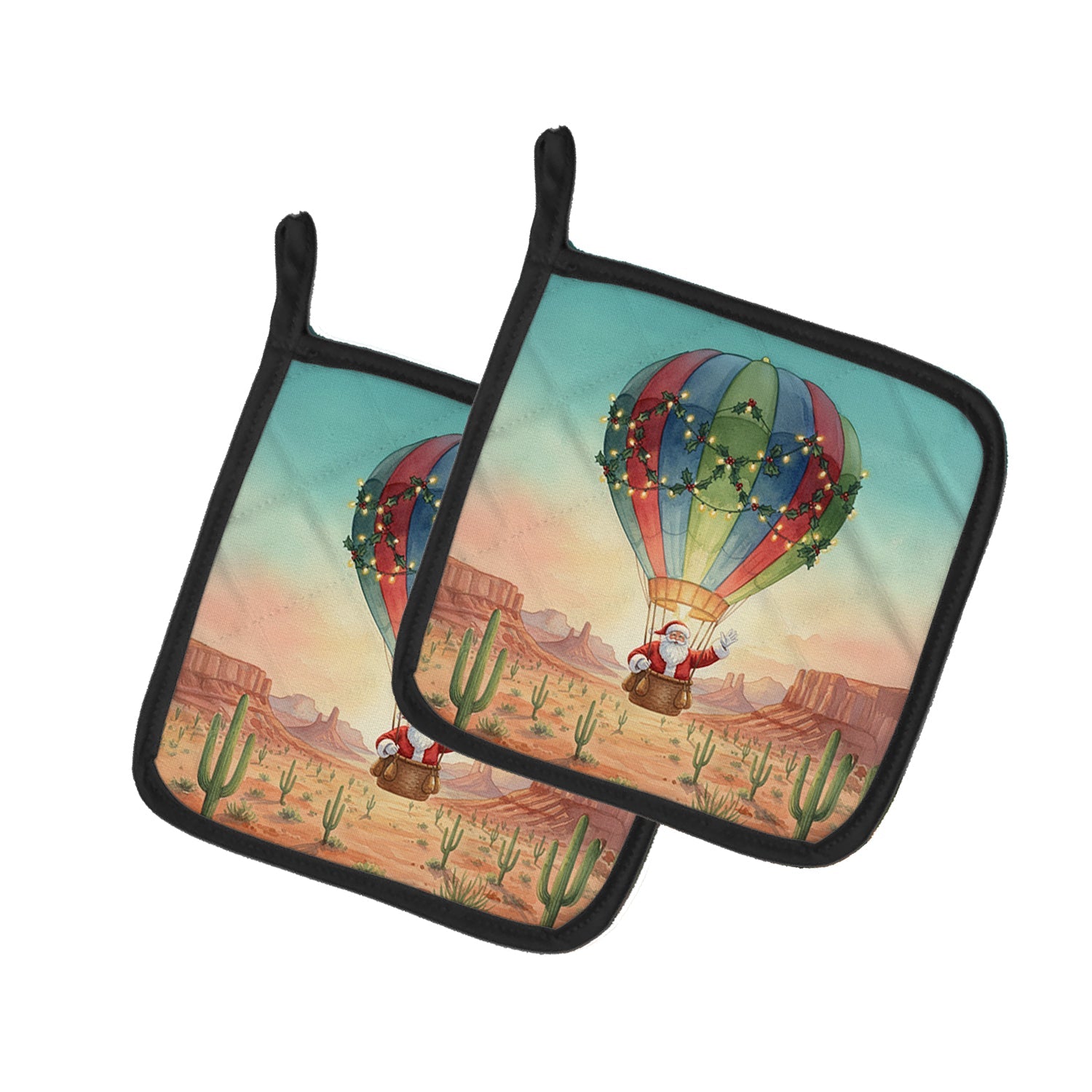 Santa Claus with a Hot-Air Balloon Christmas Pair of Pot Holders