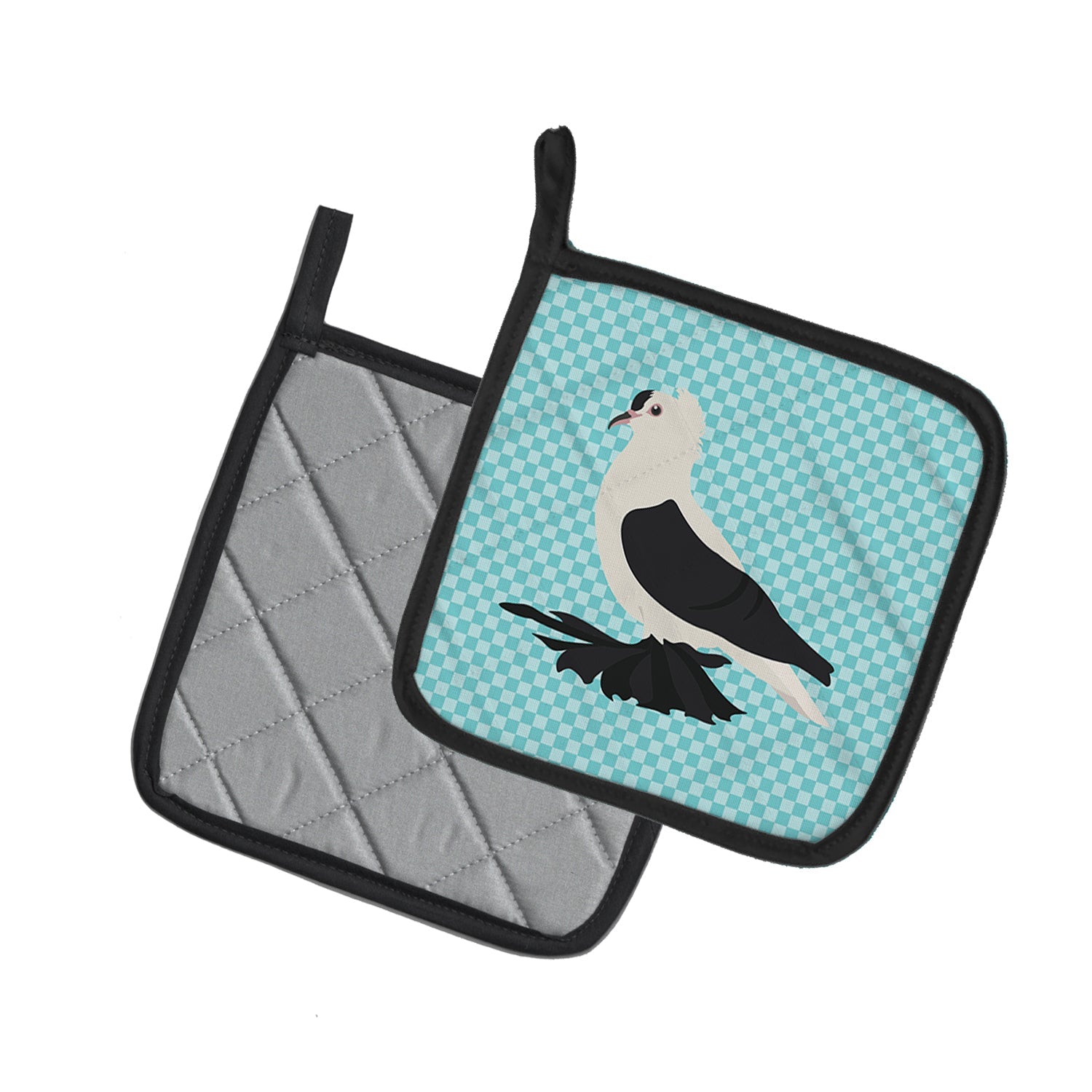 Saxon Fairy Swallow Pigeon Blue Check Pot Holders - Set of 2 - Heat-Resistant Kitchen Essentials BB8120PTHD
