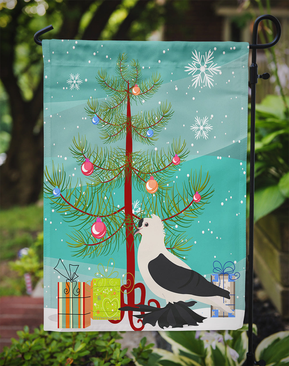 Decorate your space with our Christmas Saxon Fairy Swallow Pigeon artwork on a Garden Flag. Enhance the beauty of your garden, patio, or yard with Caroline's Treasures Decorative Garden Flag, proudly made in the USA. Crafted from two pieces of thick, double-sided polyester fabric, this 2-ply garden flag is designed to withstand various weather conditions, making it water-resistant and weatherproof. Featuring correctly readable words on both sides, this garden flag offers a delightful visual experience from any angle. With its heavier weight, it stands out among other garden flags, ensuring stability and durability even in wind, rain, and snow. Measuring approximately 11 1/4 inches by 15 1/2 inches, this flag allows you to personalize your outdoor decor. It comes with a 1 1/2-inch sleeve sewn in, allowing easy attachment to any standard garden flag stand or garden size porch hanger (sold separately). Make a statement in your outdoor space with Caroline's Treasures Decorative Garden Flag, a vibrant and high-quality flag that adds color and personality to your surroundings. Proudly made in the USA, it's a symbol of quality craftsmanship and attention to detail.