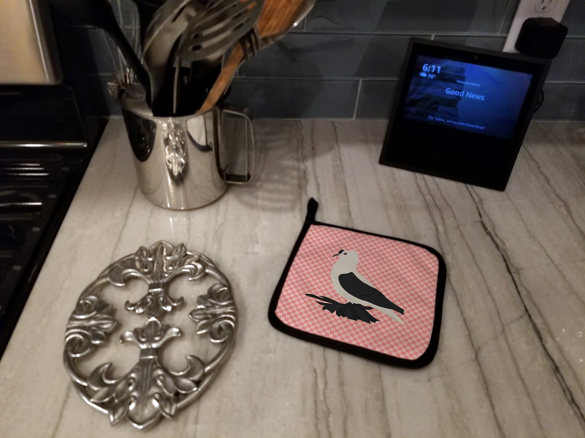 Saxon Fairy Swallow Pigeon Pink Check Pot Holders - Set of 2 - Heat-Resistant Kitchen Essentials BB7946PTHD