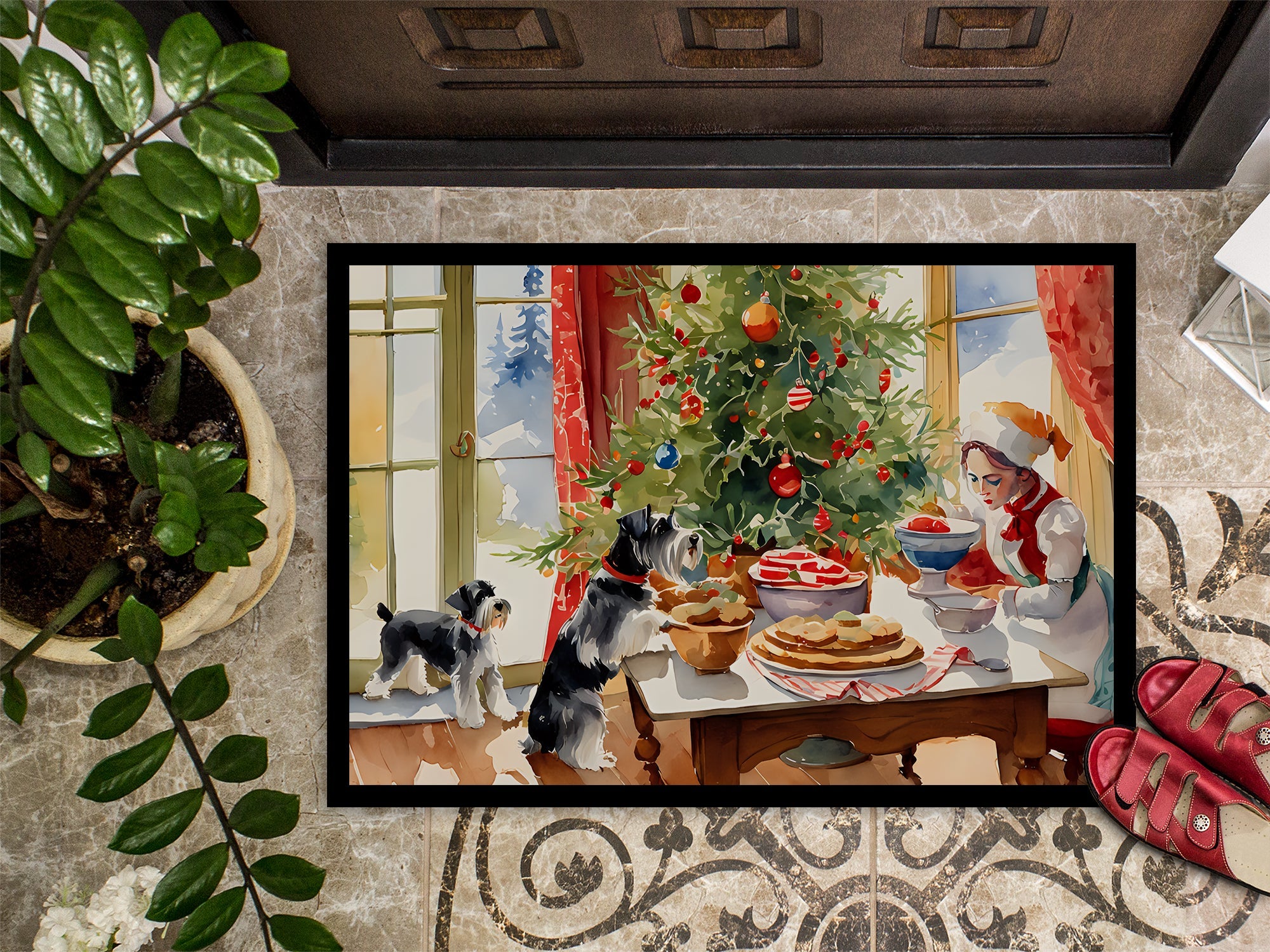 Schnauzer Christmas Cookies Doormat - 18X27 Indoor / Outdoor Rug | Made in USA