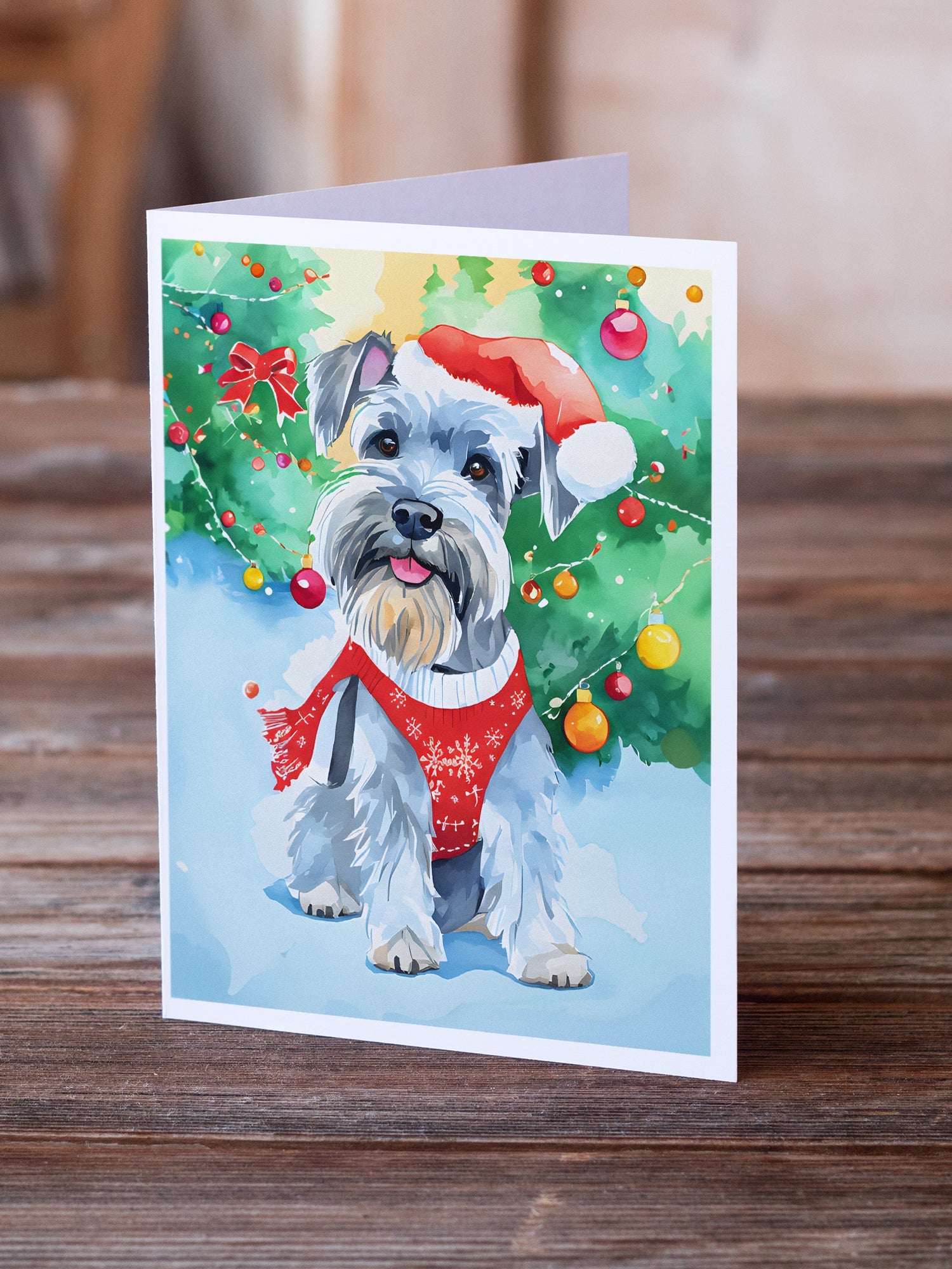 Decorate your space with our Christmas Schnauzer artwork on a . Celebrate special moments with Caroline's Treasures Printed Greeting Card Pack. This pack includes eight beautifully folded 5x7 cards, accompanied by eight matching white envelopes. With blank interiors, these cards provide ample space for your personalized messages and heartfelt holiday greetings. Each card features captivating full-color artwork, meticulously printed in our facility on high-quality 80 lb cover stock or 216 GSM. The super smooth finish of the white cards enhances the visual impact of the artwork, creating a truly stunning presentation. Designed by our talented in-house artists or licensed artists, the artwork on these cards showcases their creativity and attention to detail. From vibrant illustrations to captivating designs, each card tells its own unique story. Whether it's for birthdays, anniversaries, holidays, or any special occasion, Caroline's Treasures Greeting Card Pack is the perfect way to convey your heartfelt sentiments. Share joy, love, and warm wishes with these exquisite cards and make every moment unforgettable.