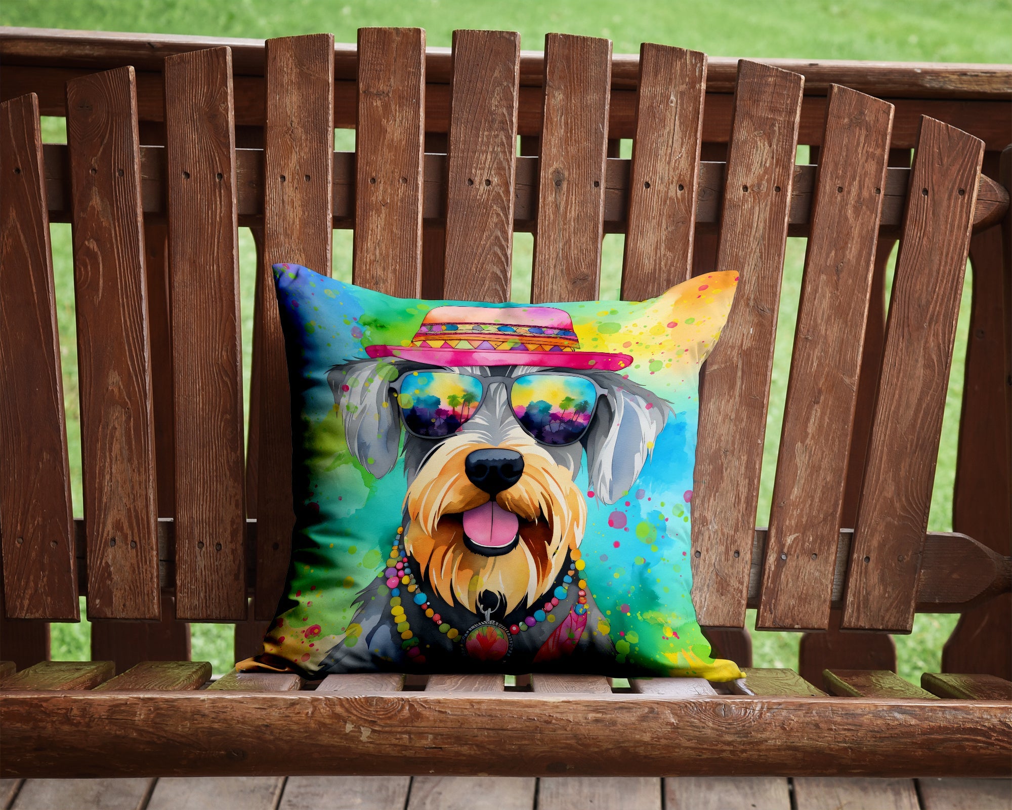 Decorate your space with our Schnauzer artwork on a Pillow. Bring a bit of Summer into your home with a Summer Pillow. Add a touch of vibrancy and comfort to your outdoor seating with Caroline's Treasures Fabric Decorative Pillow. Measuring approximately 14 inches by 14 inches, this outdoor pillow is crafted to elevate the appeal of your patio furniture, infusing it with vivid color and artistic flair. The pillow includes a 100% Polyester Fabric sham filled with a quality pillow form to provide superior comfort. Innovatively made from our brand new material, specifically woven for its water resistance, this pillow is designed for durability. The soft canvas fabric offers versatility in use, fit for your indoor couch or your outdoor patio, porch, or veranda. The fabric is dyed with colorfast dyes built for resilience against weather conditions, ensuring the pillow retains its beauty over time. Constructed by sewing three fabric pieces to create a sham, the polyester insert is then nestled inside to form the pillow, resulting in an overstuffed pillow that maintains its shape. Both the sham and the pillow insert are proudly made in the United States. As the pillows are handcrafted, there may be minor variations in size, further enhancing their unique charm. Experience comfort in style with Caroline's Treasures Fabric Decorative Pillow.