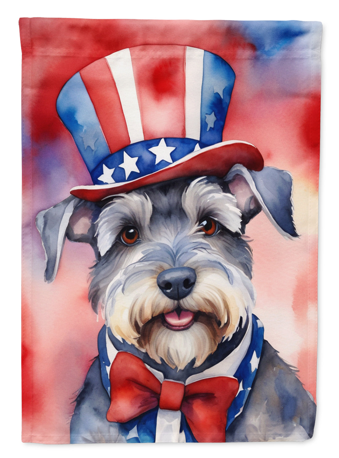 Schnauzer Patriotic American Garden Flag – Dog in Uncle Sam Hat | Red, White & Blue Outdoor Decor