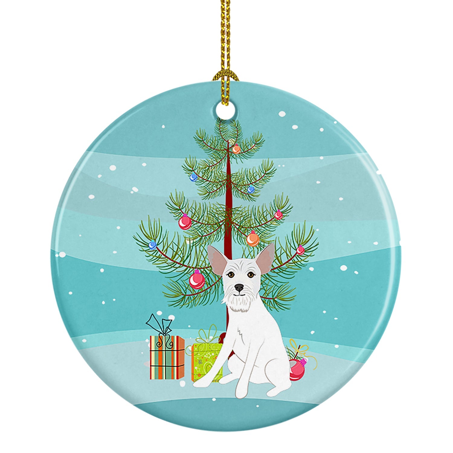 Ceramic Ornament featuring breed specific Schnauzer artwork. Celebrate Christmas with this Christmas Ornament. Add a touch of personalized charm to your Christmas tree this holiday season with our Ceramic Ornament. Measuring 2.8125 inches in diameter, this round porcelain ornament beautifully reflects your festive lights, enhancing your holiday decor. The gloss surface sets off the vibrant, full-color artwork contributed by one of our talented artists, bringing a pop of color and joy to your tree. This Ceramic Ornament doesn't stop at being merely decorative. The white back is designed for personalization. Write a heartfelt message, mark a special year, or inscribe a date with a paint pen or a permanent marker to create a treasured memento. Please ensure you allow any personalization to dry thoroughly before handling to maintain the pristine finish. Included with the ornament is a delicate gold cord for easy hanging. Made in the USA, this Ceramic Ornament makes an exceptional gift for a pet sitter, teacher, family member, or anyone you wish to share a little Christmas magic with. With its blend of style, charm, and personal touch, it's a meaningful addition to any Christmas tree.