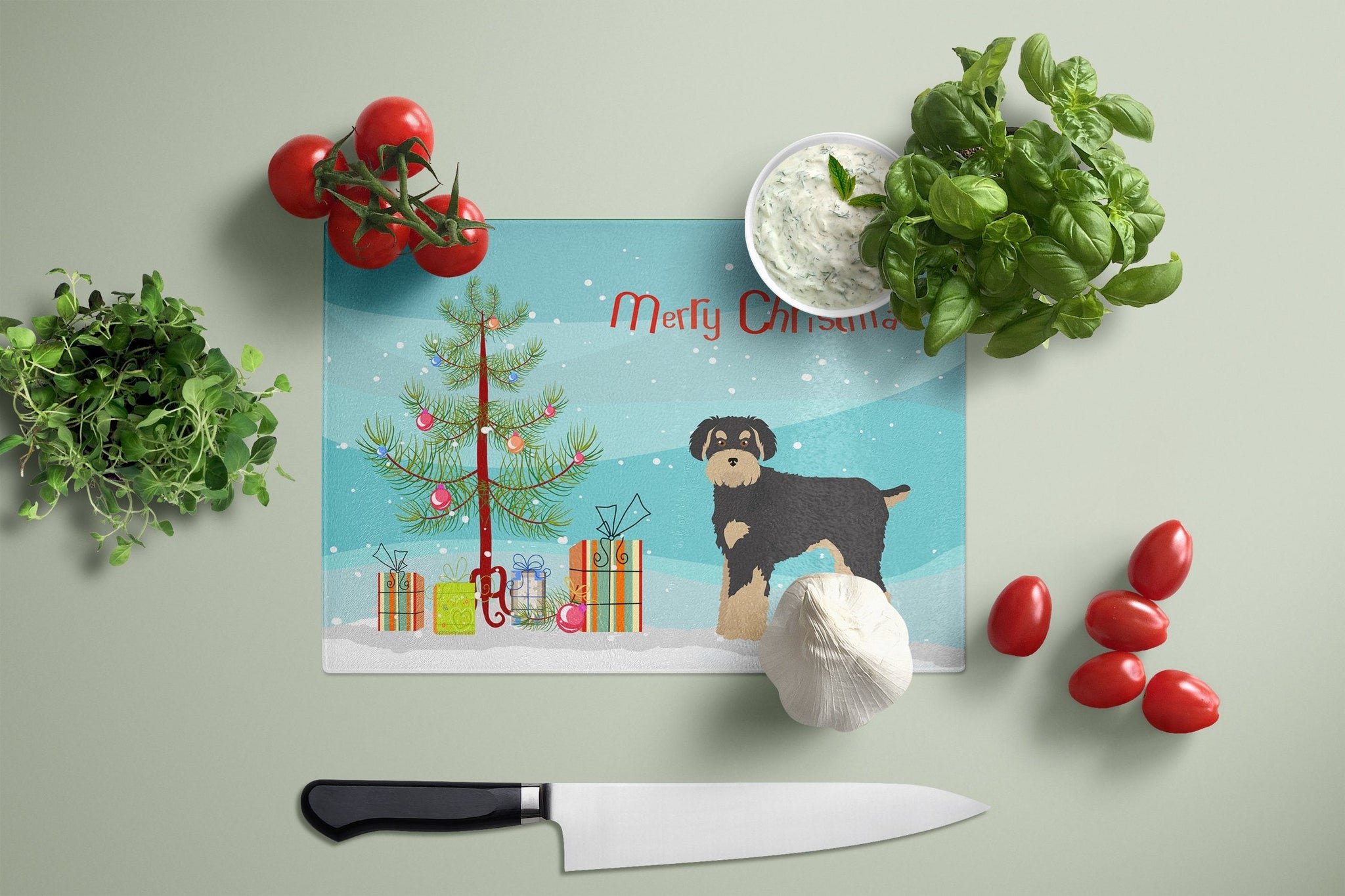 Decorate your space with our Christmas Schnoodle artwork on a Cutting Board. Introduce your kitchen to the vibrant, large Decorative Glass Cutting Board from Caroline's Treasures. Crafted from resilient tempered glass, this board is not only a utilitarian necessity but also a colorful art piece. With its generous dimensions of 15 inches in height and 12 inches in length, it offers ample space for all your cutting needs. Every piece showcases captivating artwork from distinguished artists, bringing an aesthetic edge to your kitchen. Beyond its attractive design, this cutting board ensures your countertop stays pristine and unscathed, owing to its heat-resistant properties. Engineered with user convenience in mind, it features non-skid feet for stability, and rounded corners for additional safety. Its robust construction renders it virtually unbreakable, guaranteeing longevity. The board comes with protective feet bumpers, maintaining its position during use. This product is recommended to be hand washed only. Proudly printed and assembled in the United States, this cutting board exemplifies superior craftsmanship. With Caroline's Treasures' Decorative Glass Cutting Board, you're investing in a blend of functionality and artistic flair.