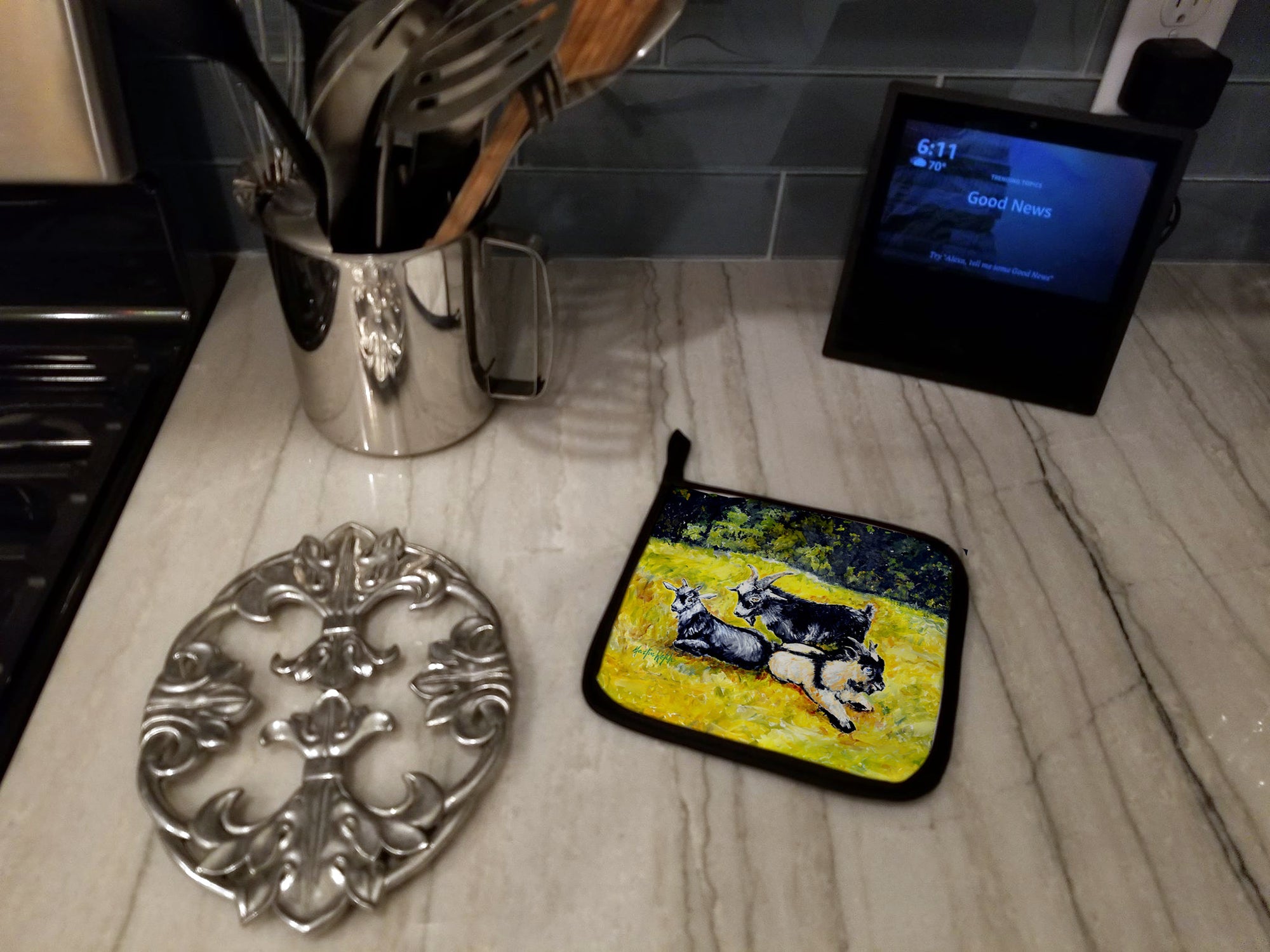 Scooter Pooter and Tooter Goats Pot Holders - Set of 2 Decorative Kitchen Helpers | Made in the USA