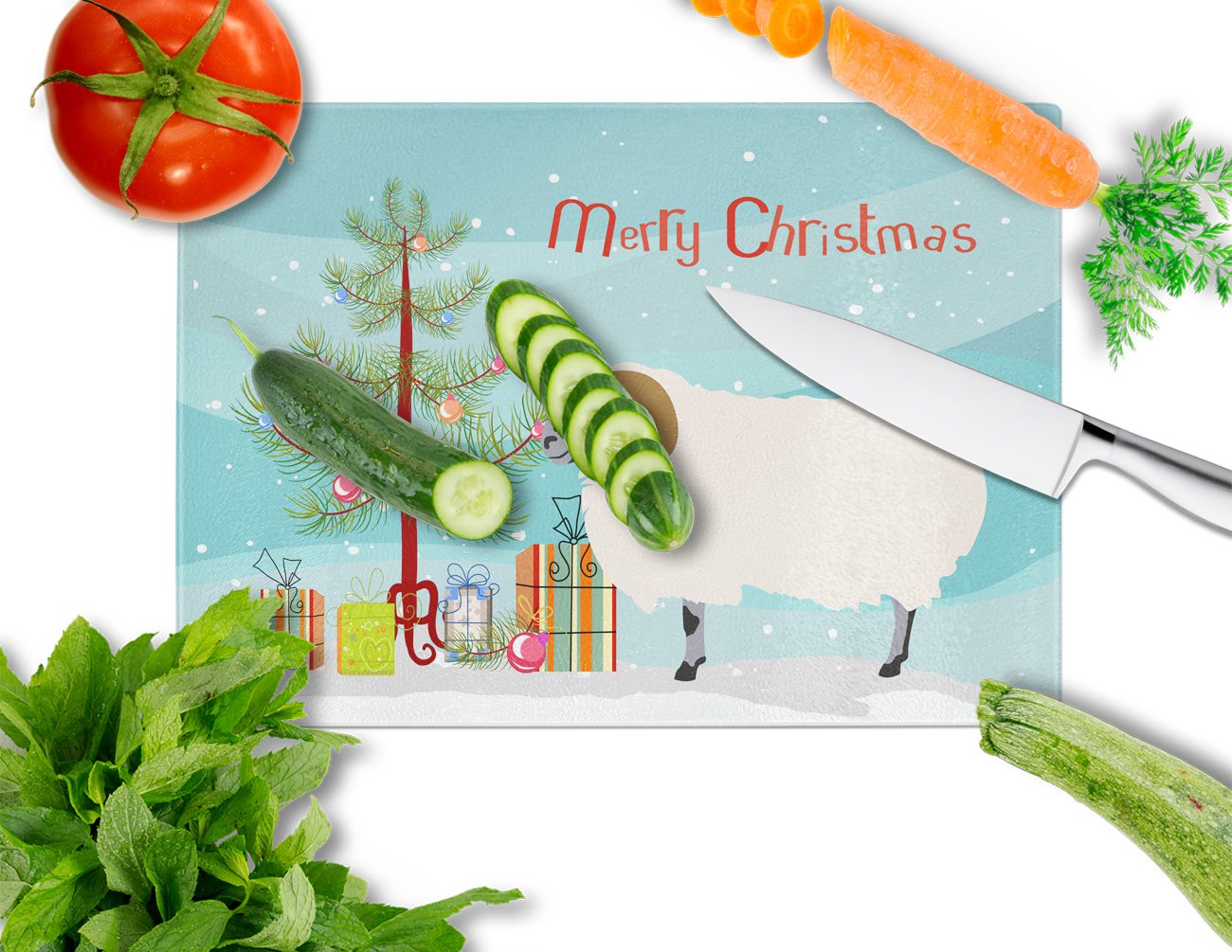 Decorate your space with our Christmas Scottish Blackface Sheep artwork on a Cutting Board. Introduce your kitchen to the vibrant, large Decorative Glass Cutting Board from Caroline's Treasures. Crafted from resilient tempered glass, this board is not only a utilitarian necessity but also a colorful art piece. With its generous dimensions of 15 inches in height and 12 inches in length, it offers ample space for all your cutting needs. Every piece showcases captivating artwork from distinguished artists, bringing an aesthetic edge to your kitchen. Beyond its attractive design, this cutting board ensures your countertop stays pristine and unscathed, owing to its heat-resistant properties. Engineered with user convenience in mind, it features non-skid feet for stability, and rounded corners for additional safety. Its robust construction renders it virtually unbreakable, guaranteeing longevity. The board comes with protective feet bumpers, maintaining its position during use. This product is recommended to be hand washed only. Proudly printed and assembled in the United States, this cutting board exemplifies superior craftsmanship. With Caroline's Treasures' Decorative Glass Cutting Board, you're investing in a blend of functionality and artistic flair.