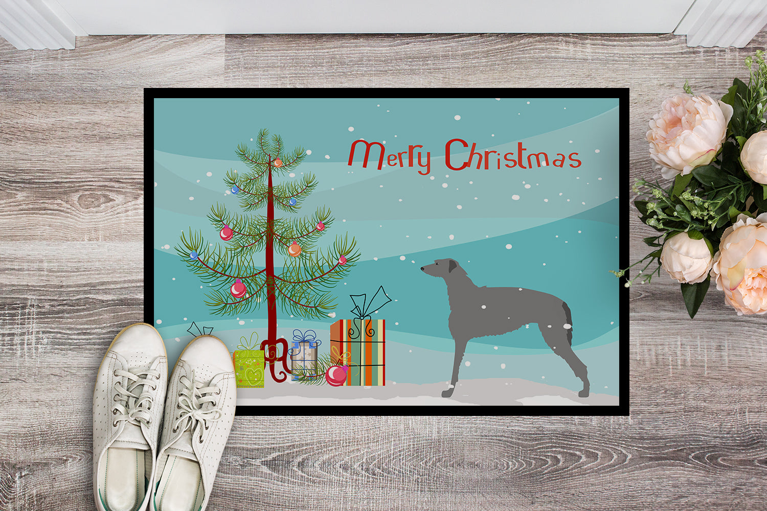 Scottish Deerhound Merry Christmas Tree Doormat - 24x36 Decorative Floor Mat – Indoor/Outdoor Rug with Artistic Flair BB2914JMAT