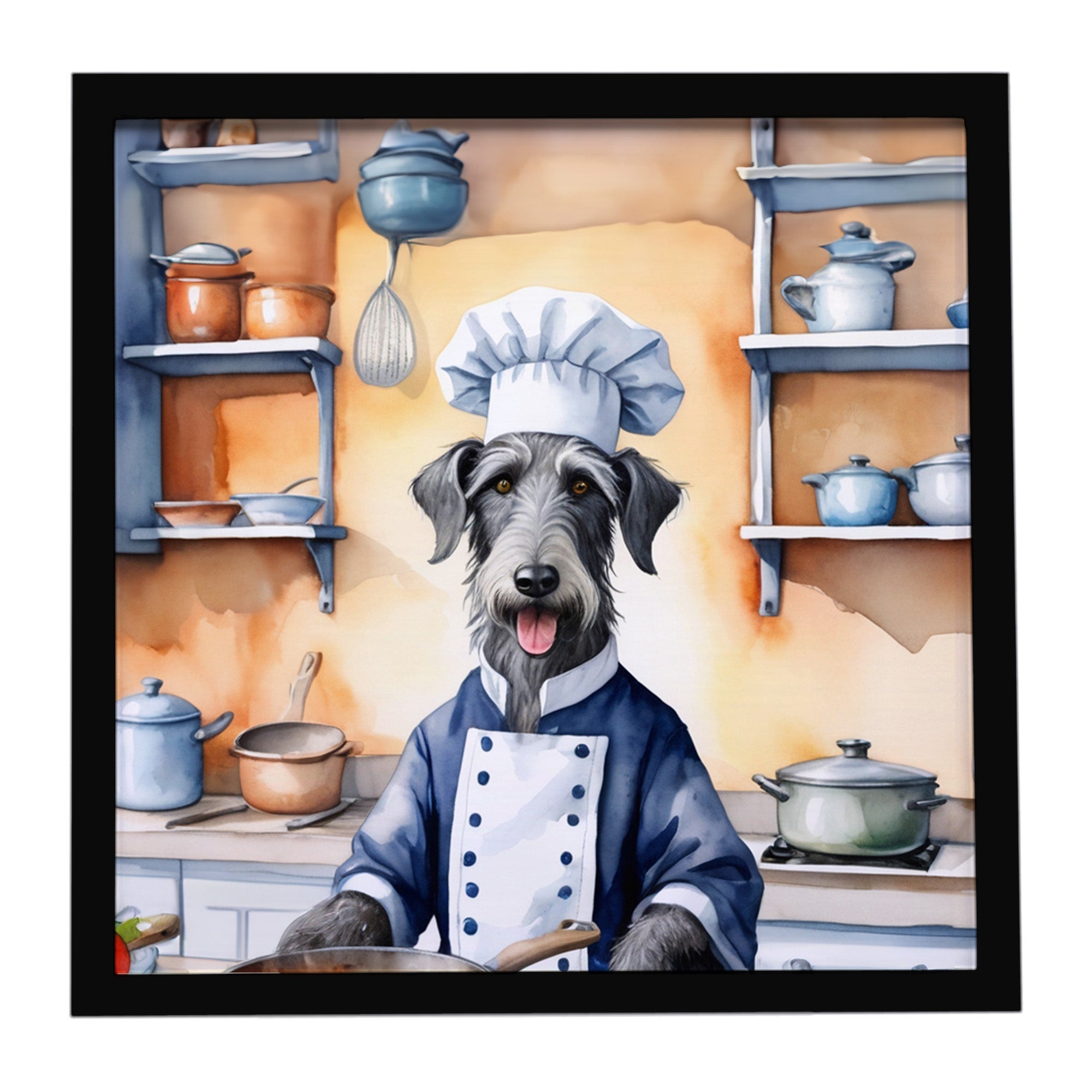 Framed Metal Print featuring breed specific Scottish Deerhound artwork. Looking for wall art that’s stylish, safe, and made to last? Our 8x8 Framed Metal Prints are designed with modern living in mind. Each piece features original artwork printed on durable aluminum, set in a sleek frame that measures 3/4 inch deep for a clean, contemporary finish. Unlike glass prints, these are lightweight, shatter-free, and family-safe. Perfect for kitchens, bathrooms, or covered porches where traditional décor might not hold up. The built-in sawtooth hanger molded into the back makes it easy to hang right out of the box—just use your own nails or screws. Cleaning is simple too: a quick wipe with a damp cloth and mild soap keeps your artwork looking vibrant. Proudly made in Alabama, every print supports our community of artists while adding personality and charm to your home.