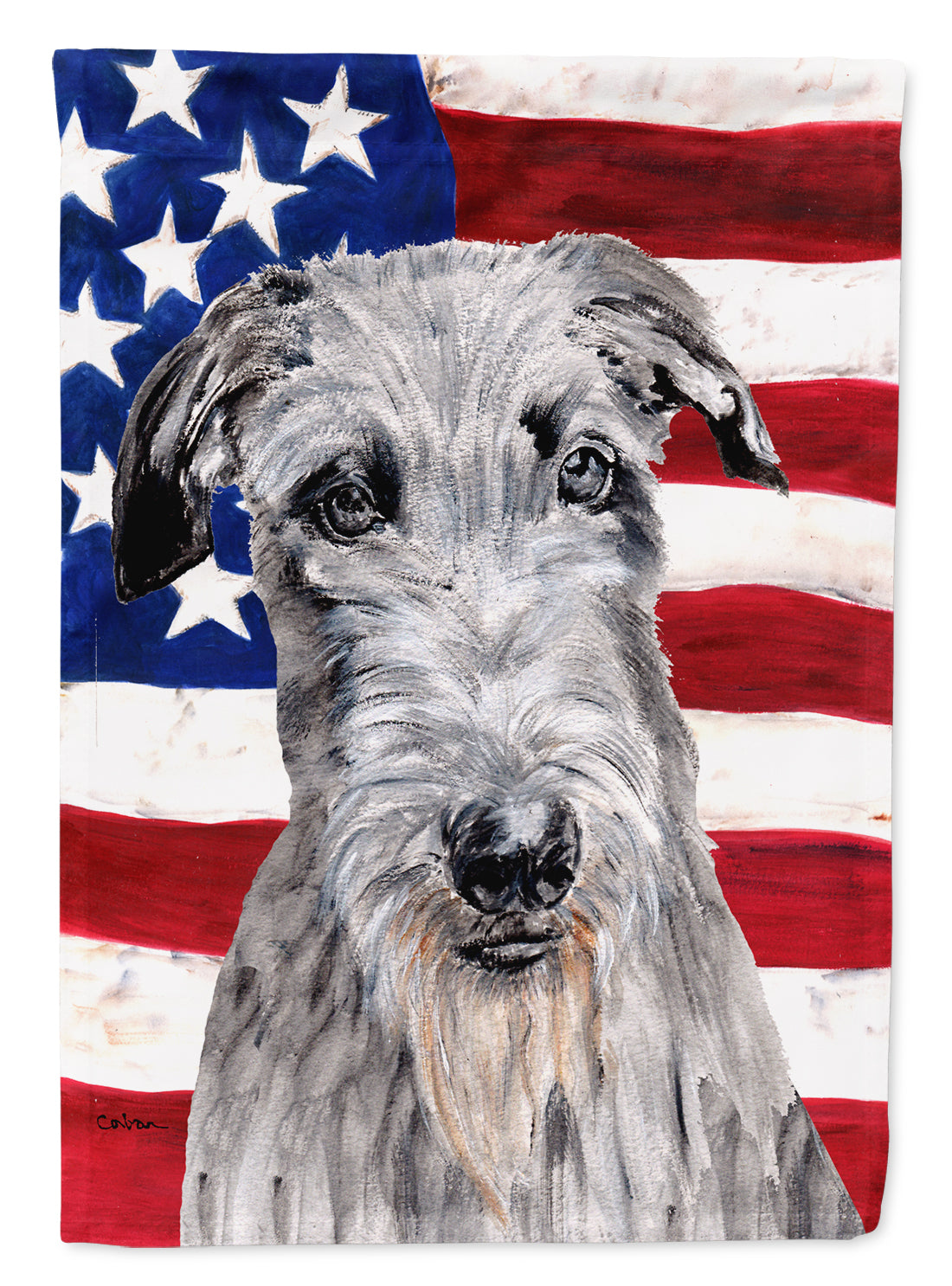 Scottish Deerhound with American Flag USA Flag Canvas House Size SC9634CHF