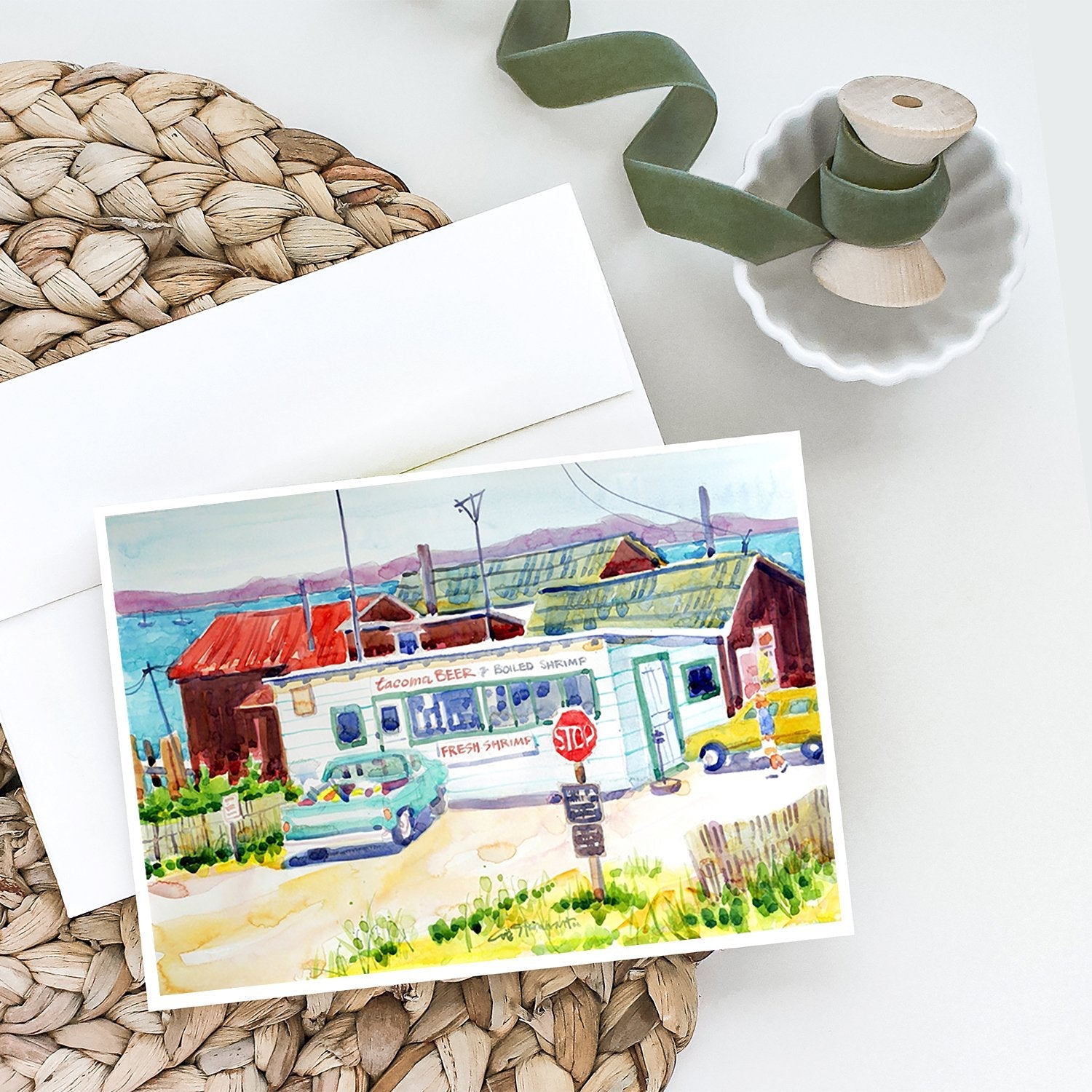 Seafood Shack for fresh shrimp Greeting Cards -  Blank Note Cards – 8-Pack of Artist-Designed Cards with Envelopes