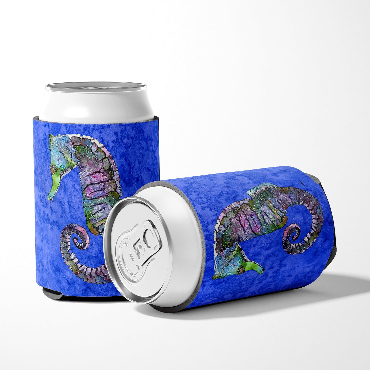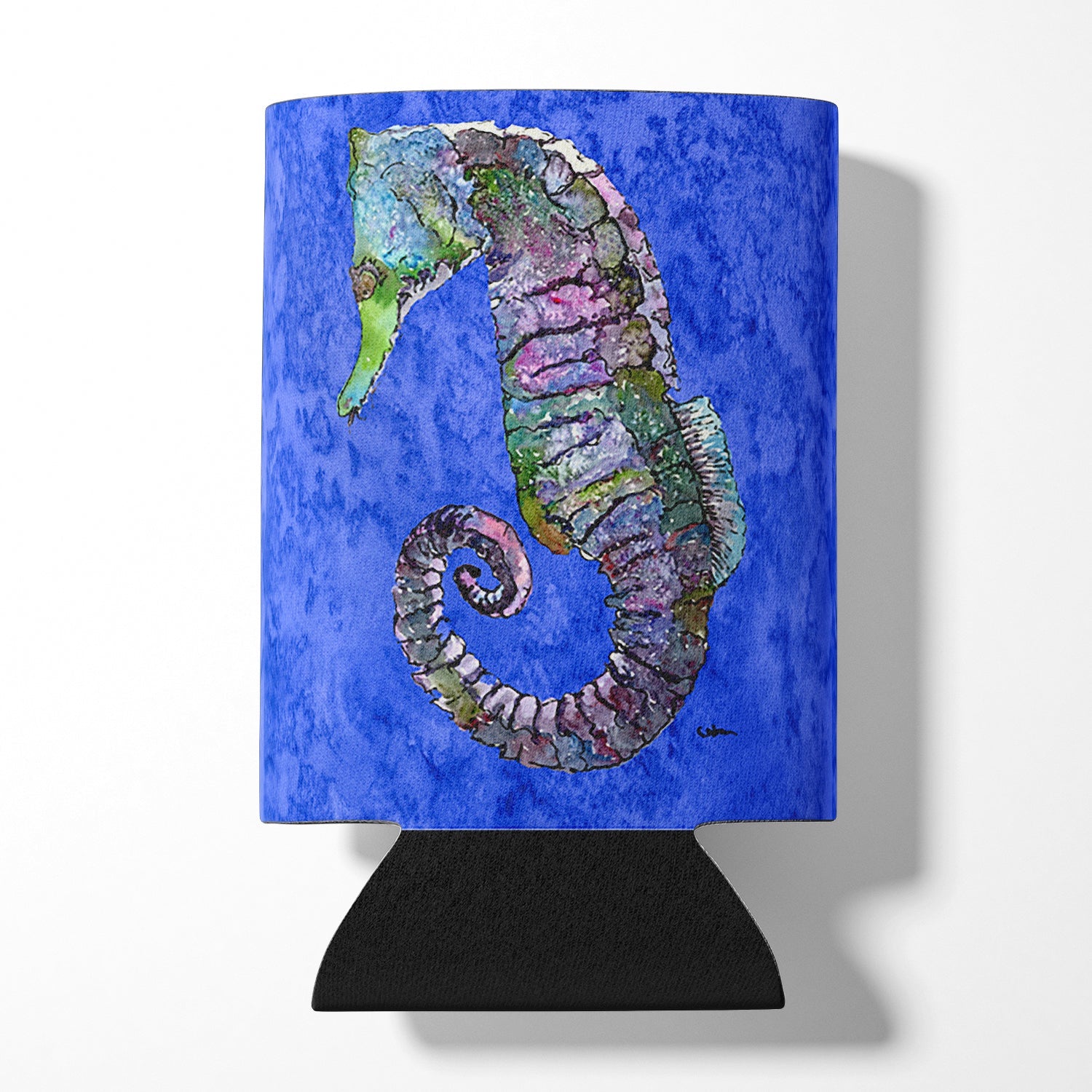 Decorate your space with our Seahorse artwork on a Hugger. Introducing our Can or Bottle Hugger, a must-have accessory for your beverage enjoyment. Designed to perfectly fit any standard 12-ounce can, this can cooler is the ideal companion to keep your soda, beer, or any drink of your choice at the perfect temperature. Our can hugger is not just functional, it's a work of art. Featuring full-color artwork that's permanently dyed into the foam, this hugger promises a design that's fade-resistant and made to last, making your beverage stand out in style. The design isn't silk-screened, which ensures the vibrancy of the colors, offering you a long-lasting, appealing aesthetic. What sets our can hugger apart is its high-quality foam fabric, which is not only durable but also machine washable for easy maintenance. Whether you call it a huggie, can coolie, can cozie, or beer holder, this drink sleeve brings style and function together. Proudly designed, printed, and sewn in the USA, our Can or Bottle Hugger is an ideal addition to your beverage experience. Match it with one of our insulated coolers for a complete gift set, adding flair and convenience to your drink enjoyment.