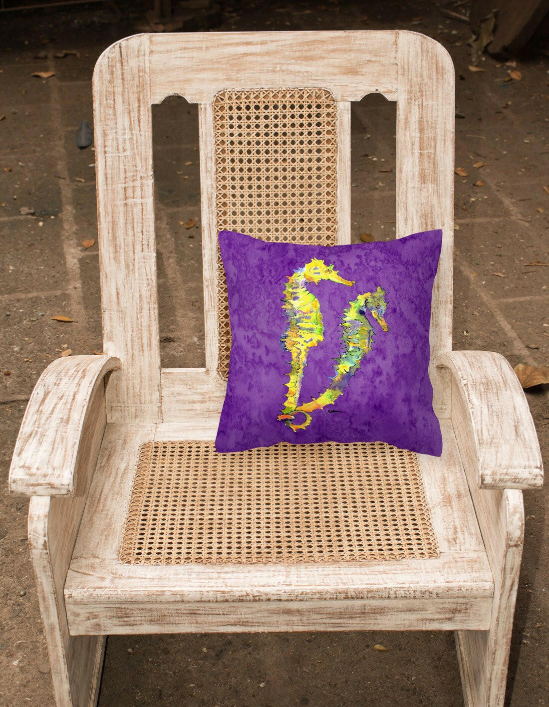 Decorate your space with our Seahorse artwork on a Pillow. Add a touch of vibrancy and comfort to your outdoor seating with Caroline's Treasures Fabric Decorative Pillow. Measuring approximately 14 inches by 14 inches, this outdoor pillow is crafted to elevate the appeal of your patio furniture, infusing it with vivid color and artistic flair. The pillow includes a 100% Polyester Fabric sham filled with a quality pillow form to provide superior comfort. Innovatively made from our brand new material, specifically woven for its water resistance, this pillow is designed for durability. The soft canvas fabric offers versatility in use, fit for your indoor couch or your outdoor patio, porch, or veranda. The fabric is dyed with colorfast dyes built for resilience against weather conditions, ensuring the pillow retains its beauty over time. Constructed by sewing three fabric pieces to create a sham, the polyester insert is then nestled inside to form the pillow, resulting in an overstuffed pillow that maintains its shape. Both the sham and the pillow insert are proudly made in the United States. As the pillows are handcrafted, there may be minor variations in size, further enhancing their unique charm. Experience comfort in style with Caroline's Treasures Fabric Decorative Pillow.