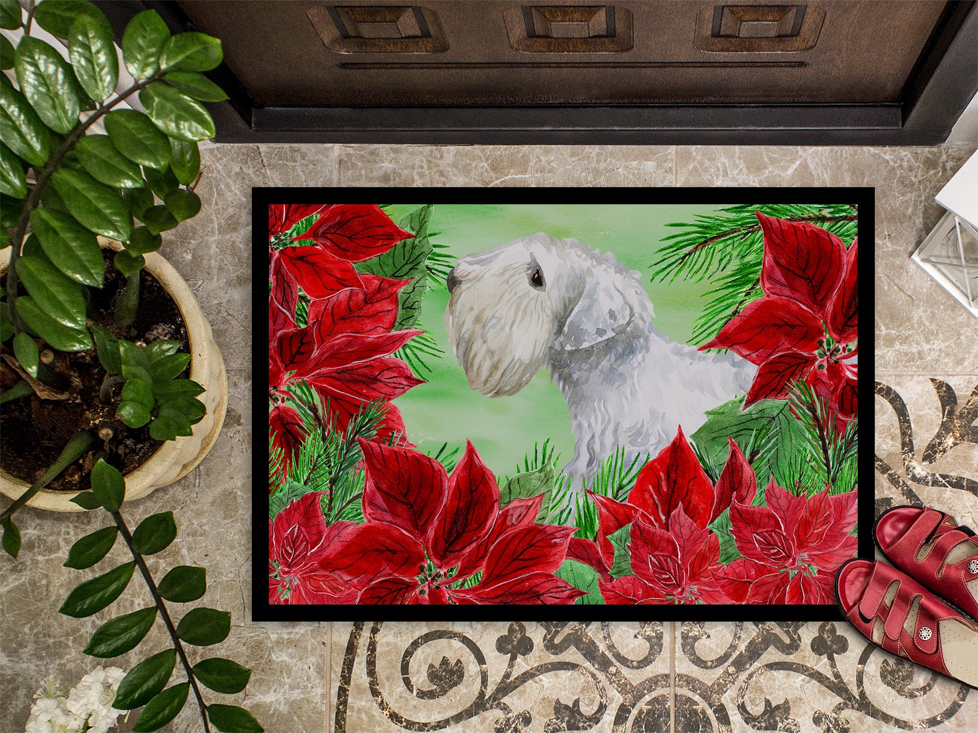 Decorate your space with our Sealyham Terrier artwork on a Doormat. Welcome your guests in style with our Artwork Door Mat, designed to withstand almost any weather condition. This mat, measuring approximately 18 by 27 inches, is held together by durable black binding tape. Its top layer, composed of polyester felt, is dyed with the eye-catching image you see on the mat. A few layers below provide the mat with stability, while its rubber bottom is stamped to help prevent slipping and ensures safety. Our mat works wonderfully as both an indoor or outdoor door mat. For cleaning, simply hose it off with water or use a power washer - no need for any cleaner that produces suds. Avoid scrubbing with a brush, instead, opt for the vacuum on floor setting. Designed manufactured and printed in the USA, this mat is a perfect addition to your porch, outdoor kitchen, entryway, or any indoor space. Its unique design makes it a charming decorative rug that greets your guests and adds a stylish touch to your home decor.