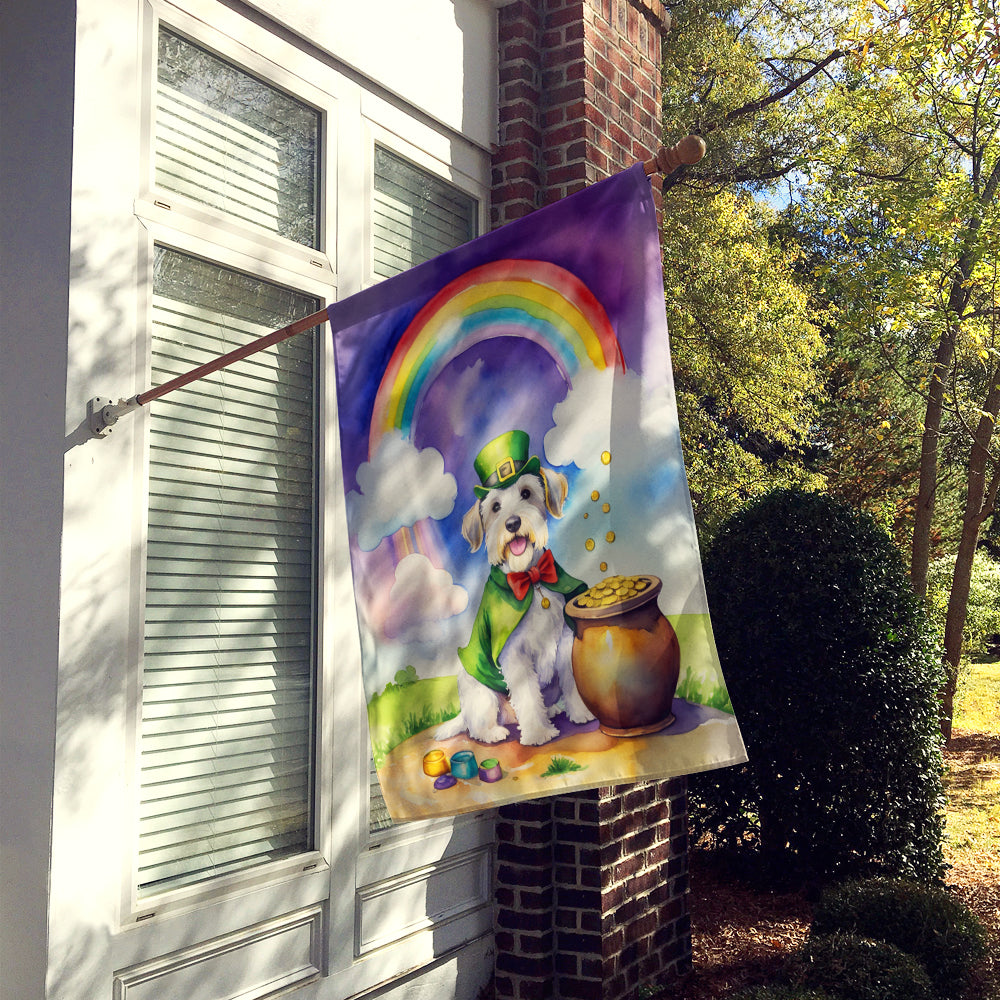Decorate your space with our St Patrick's Day Sealyham Terrier artwork on a Large Flag. Presenting our Heavy Duty Polyester House Size Decorative Sleeve Pole Flag, a vibrant addition to enhance the aesthetic appeal of your home. This large decorative flag, measuring approximately 28 x 40 inches, offers ample coverage and visibility. Each flag is meticulously sewn and made individually, ensuring a unique piece that may slightly vary in size. It's a sleeve pole flag, designed to fit a standard decorative flag pole effortlessly. Please note that the flag pole and bracket are not included and should be purchased separately. What sets our flag apart is its dual-sided print. The design is mirrored on both sides of the fabric, allowing for uniform visibility regardless of the angle. Printed in full color, our flag showcases vibrant hues that truly stand out. To ensure lasting vibrancy and durability, the dyes are heat-set into the fabric. This ensures your flag remains bright and captivating through various weather conditions. Elevate the look of your home with our Heavy Duty Polyester House Size Decorative Sleeve Pole Flag!