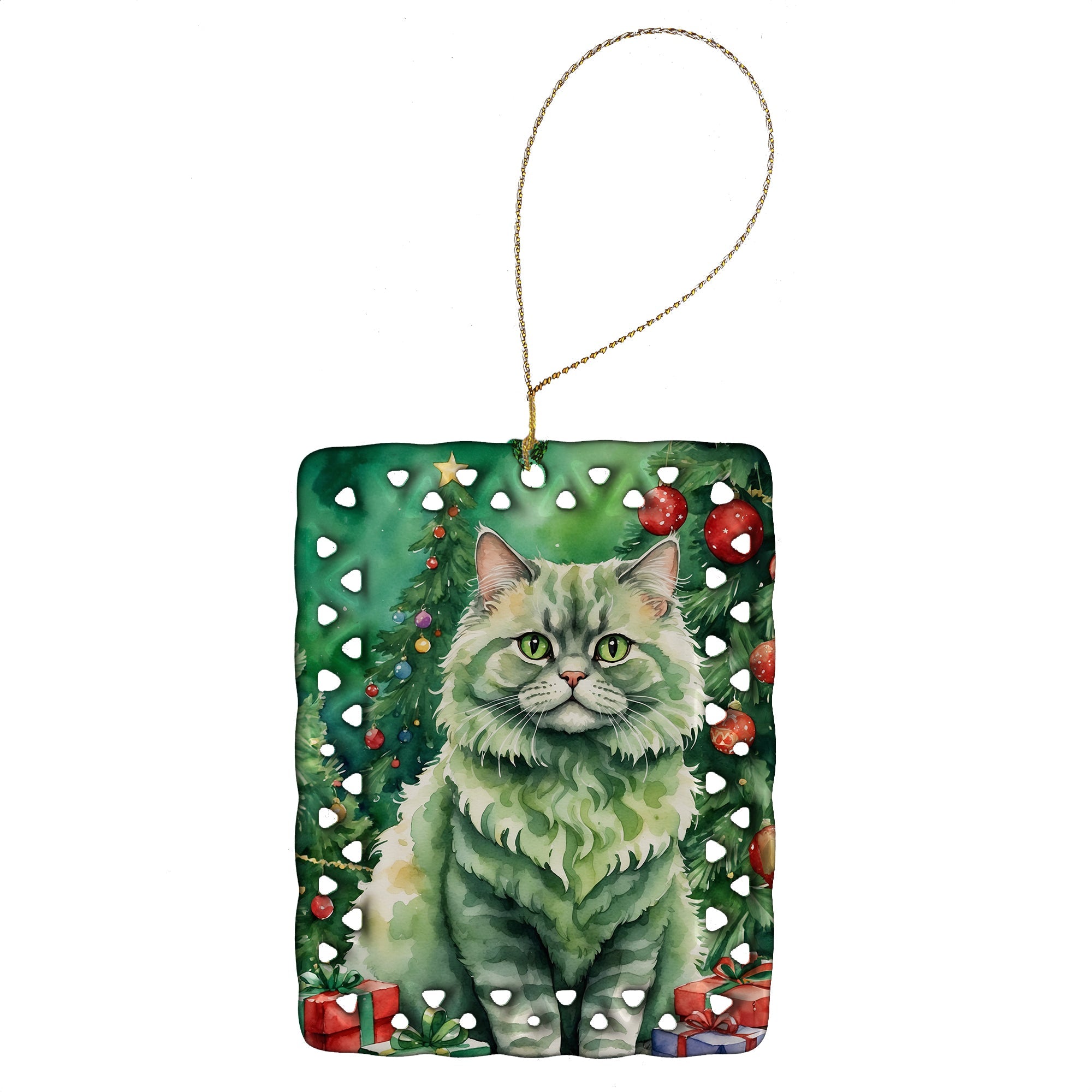 Porcelain Ornament featuring breed specific Selkirk Rex artwork. Celebrate Christmas with this Christmas Ornament. Add a unique, personal touch to your holiday decor with our Rectangular Lattice Porcelain Ornament. Perfect for creating cherished memories, this high-quality ornament shines under festive lights, reflecting warmth and joy throughout your Christmas tree. Crafted with a glossy finish, it showcases vibrant, full-color artwork contributed by our talented artists, ensuring your tree is adorned with a burst of color and holiday spirit. What sets this Porcelain Ornament apart is its customizable white back. Use a paint pen or permanent marker to write a heartfelt message, commemorate a special year, or mark an unforgettable date, turning this ornament into a keepsake that will be treasured for years to come. For best results, allow any personalization to dry thoroughly before handling. Each ornament comes complete with a delicate gold cord, making it easy to hang and display. Proudly made in the USA, this ornament measures 3.375 x 2.625 inches and is a thoughtful gift for pet sitters, teachers, family members, or anyone who would appreciate a little extra holiday magic. Bring style, charm, and a touch of personal meaning to your Christmas tree with this beautifully designed ornament..