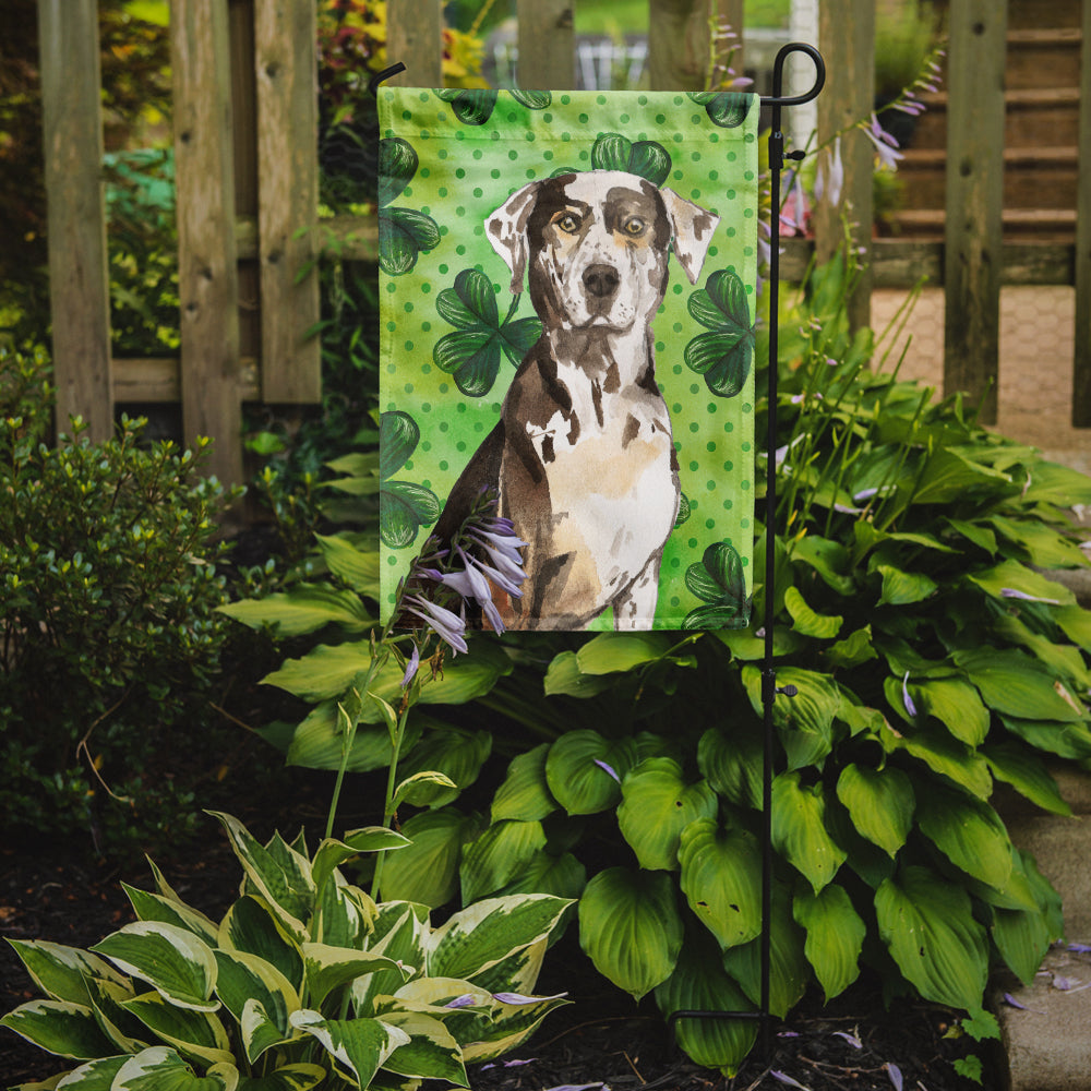 Decorate your space with our St Patrick's Day Catahoula Leopard Dog artwork on a Garden Flag. Enhance the beauty of your garden, patio, or yard with Caroline's Treasures Decorative Garden Flag, proudly made in the USA. Crafted from two pieces of thick, double-sided polyester fabric, this 2-ply garden flag is designed to withstand various weather conditions, making it water-resistant and weatherproof. Featuring correctly readable words on both sides, this garden flag offers a delightful visual experience from any angle. With its heavier weight, it stands out among other garden flags, ensuring stability and durability even in wind, rain, and snow. Measuring approximately 11 1/4 inches by 15 1/2 inches, this flag allows you to personalize your outdoor decor. It comes with a 1 1/2-inch sleeve sewn in, allowing easy attachment to any standard garden flag stand or garden size porch hanger (sold separately). Make a statement in your outdoor space with Caroline's Treasures Decorative Garden Flag, a vibrant and high-quality flag that adds color and personality to your surroundings. Proudly made in the USA, it's a symbol of quality craftsmanship and attention to detail.