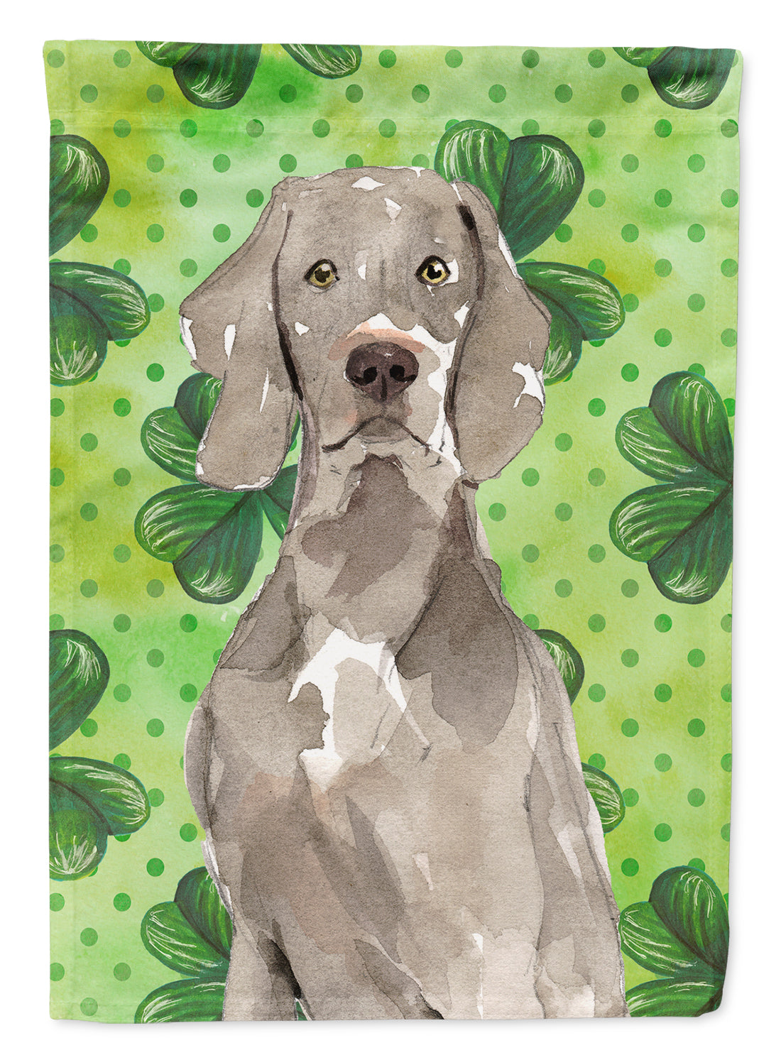 Decorate your space with our St Patrick's Day Weimaraner artwork on a Garden Flag. Enhance the beauty of your garden, patio, or yard with Caroline's Treasures Decorative Garden Flag, proudly made in the USA. Crafted from two pieces of thick, double-sided polyester fabric, this 2-ply garden flag is designed to withstand various weather conditions, making it water-resistant and weatherproof. Featuring correctly readable words on both sides, this garden flag offers a delightful visual experience from any angle. With its heavier weight, it stands out among other garden flags, ensuring stability and durability even in wind, rain, and snow. Measuring approximately 11 1/4 inches by 15 1/2 inches, this flag allows you to personalize your outdoor decor. It comes with a 1 1/2-inch sleeve sewn in, allowing easy attachment to any standard garden flag stand or garden size porch hanger (sold separately). Make a statement in your outdoor space with Caroline's Treasures Decorative Garden Flag, a vibrant and high-quality flag that adds color and personality to your surroundings. Proudly made in the USA, it's a symbol of quality craftsmanship and attention to detail.