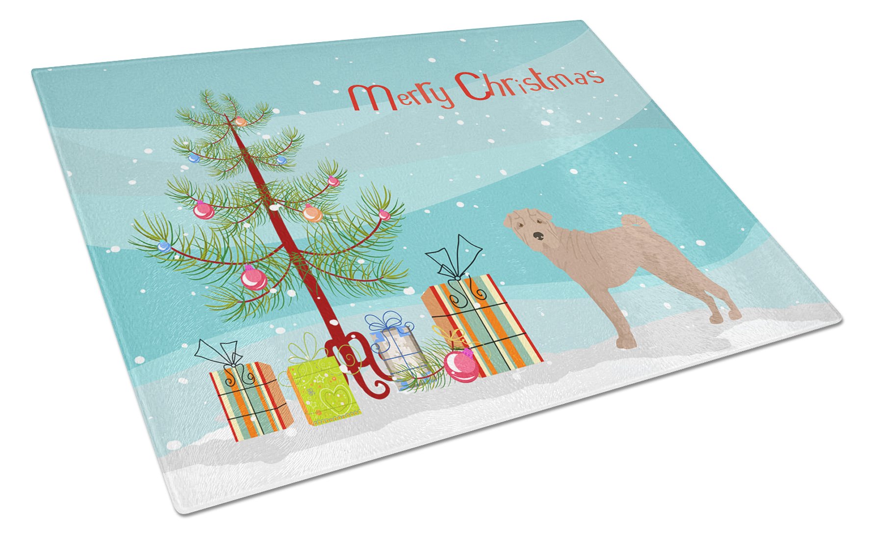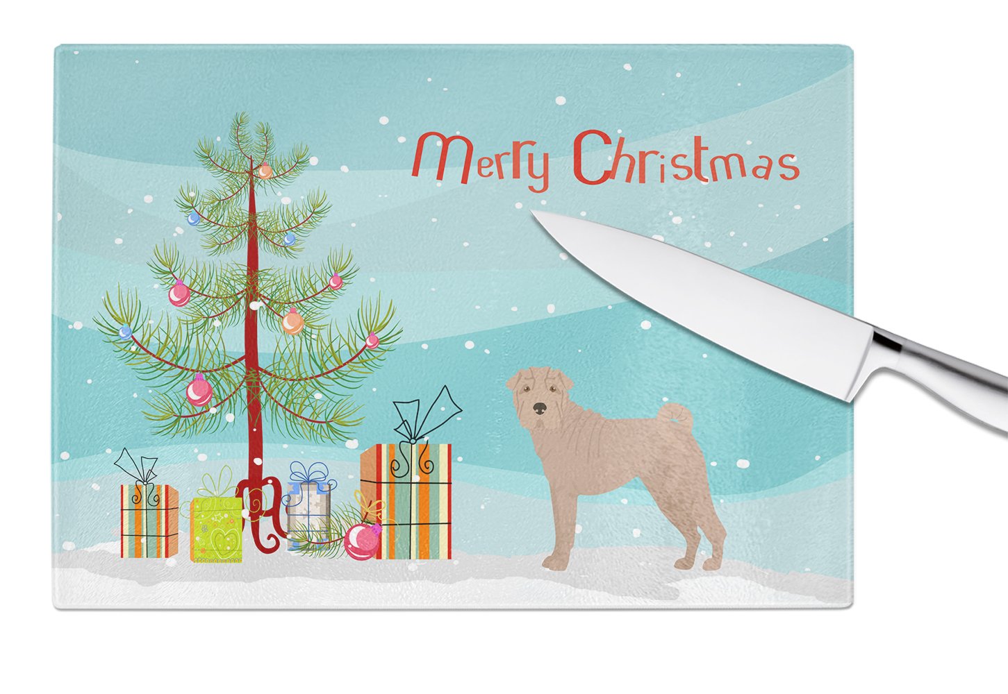 Shar Pei Christmas Tree Glass Cutting Boards – Durable, Decorative Kitchen Art Large CK3485LCB