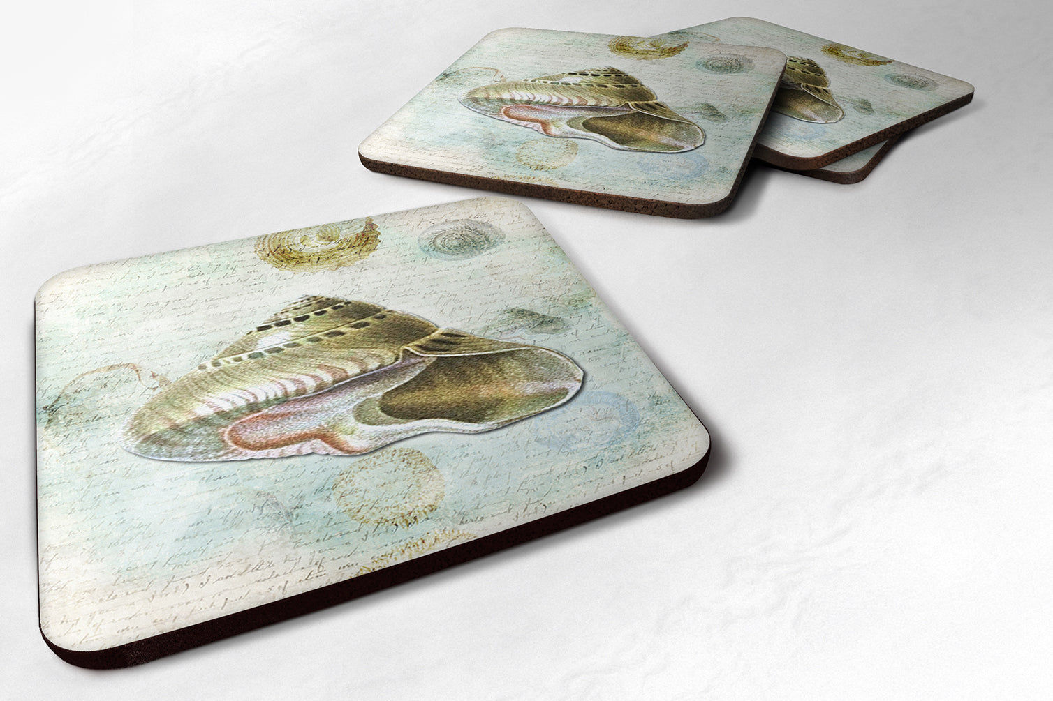 Shells Coasters - Set of 4 Lightweight Foam, Absorbent Drink Coasters