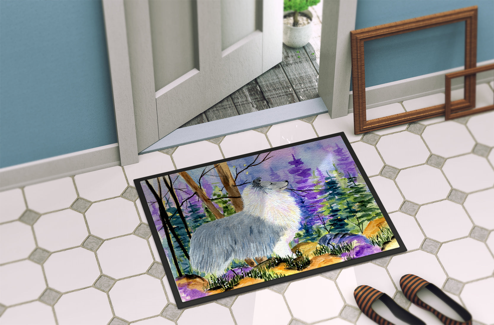 Decorate your space with our Sheltie/Shetland Sheepdog artwork on a Doormat. Welcome your guests in style with our Artwork Door Mat, designed to withstand almost any weather condition. This mat, measuring approximately 24 by 36 inches, is held together by durable black binding tape. Its top layer, composed of polyester felt, is dyed with the eye-catching image you see on the mat. A few layers below provide the mat with stability, while its rubber bottom is stamped to help prevent slipping and ensures safety. Our mat works wonderfully as both an indoor or outdoor door mat. For cleaning, simply hose it off with water or use a power washer - no need for any cleaner that produces suds. Avoid scrubbing with a brush, instead, opt for the vacuum on floor setting. Designed manufactured and printed in the USA, this mat is a perfect addition to your porch, outdoor kitchen, entryway, or any indoor space. Its unique design makes it a charming decorative rug that greets your guests and adds a stylish touch to your home decor.