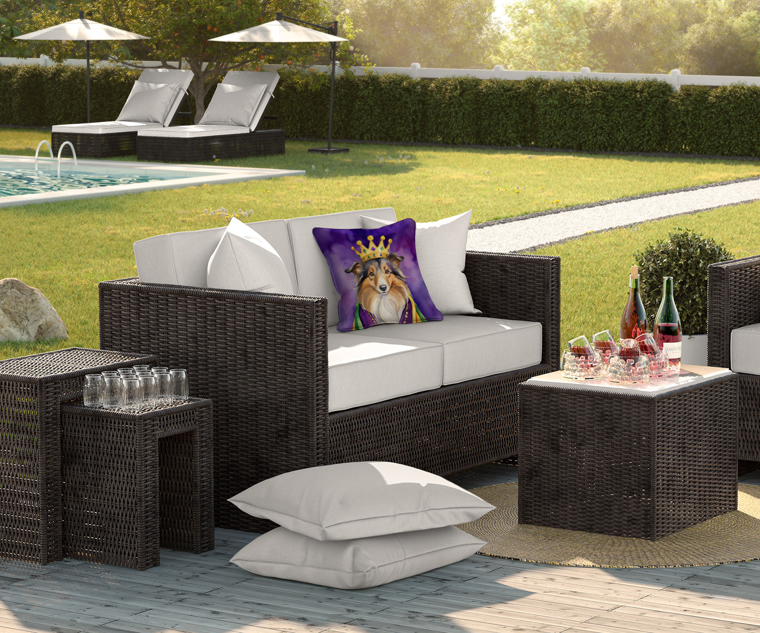 Throw Pillow featuring breed specific Sheltie Shetland Sheepdog artwork. Celebrate Mardi Gras with this Mardi Gras Pillow. Revitalize your outdoor or indoor living space with Caroline's Treasures 18x18 Fabric Decorative Pillow. With a generously sized dimension of approximately 18 inches by 18 inches, this pillow makes a comfortable and aesthetic addition to any seating area. Made from a unique, water-resistant material developed by Caroline's Treasures, the pillow sham is 100% polyester fabric that's durable and ready to weather any condition. Its vibrant, full-color artwork will not fade over time as it is dyed with color-fast dyes. Whether you place it on your patio furniture, porch, veranda, or indoor couch, its soft canvas fabric ensures a cozy experience. The pillow is handcrafted in the United States, featuring a sham created from three pieces of fabric and a polyester insert for enduring shape and overstuffed comfort. Despite being robustly built to endure the outdoors, it is as soft and snug as your favorite indoor cushions. Please note, as all our pillows are handmade, sizes may vary slightly, adding to the charm of this unique decorative item.