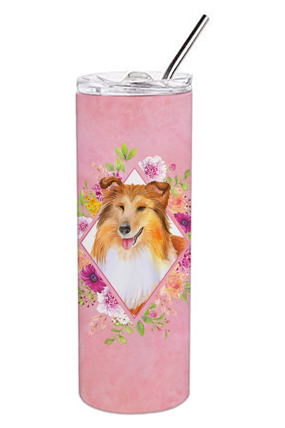 Sheltie Shetland Sheepdog Pink Flowers Double Walled Stainless Steel 20 oz Skinny Tumbler CK4182TBL20