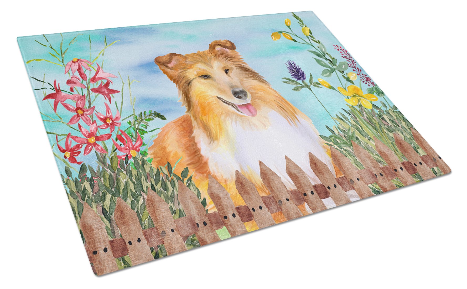 Decorate your space with our Sheltie/Shetland Sheepdog artwork on a Cutting Board. Bring a bit of Spring into your home with a Spring Cutting Board. Introduce your kitchen to the vibrant, large Decorative Glass Cutting Board from Caroline's Treasures. Crafted from resilient tempered glass, this board is not only a utilitarian necessity but also a colorful art piece. With its generous dimensions of 15 inches in height and 12 inches in length, it offers ample space for all your cutting needs. Every piece showcases captivating artwork from distinguished artists, bringing an aesthetic edge to your kitchen. Beyond its attractive design, this cutting board ensures your countertop stays pristine and unscathed, owing to its heat-resistant properties. Engineered with user convenience in mind, it features non-skid feet for stability, and rounded corners for additional safety. Its robust construction renders it virtually unbreakable, guaranteeing longevity. The board comes with protective feet bumpers, maintaining its position during use. This product is recommended to be hand washed only. Proudly printed and assembled in the United States, this cutting board exemplifies superior craftsmanship. With Caroline's Treasures' Decorative Glass Cutting Board, you're investing in a blend of functionality and artistic flair.