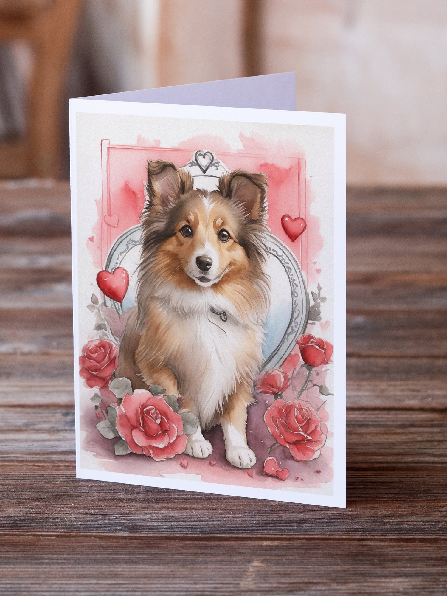 Decorate your space with our Valentine's Day Sheltie Shetland Sheepdog artwork on a . Celebrate special moments with Caroline's Treasures Printed Greeting Card Pack. This pack includes eight beautifully folded 5x7 cards, accompanied by eight matching white envelopes. With blank interiors, these cards provide ample space for your personalized messages and heartfelt holiday greetings. Each card features captivating full-color artwork, meticulously printed in our facility on high-quality 80 lb cover stock or 216 GSM. The super smooth finish of the white cards enhances the visual impact of the artwork, creating a truly stunning presentation. Designed by our talented in-house artists or licensed artists, the artwork on these cards showcases their creativity and attention to detail. From vibrant illustrations to captivating designs, each card tells its own unique story. Whether it's for birthdays, anniversaries, holidays, or any special occasion, Caroline's Treasures Greeting Card Pack is the perfect way to convey your heartfelt sentiments. Share joy, love, and warm wishes with these exquisite cards and make every moment unforgettable.