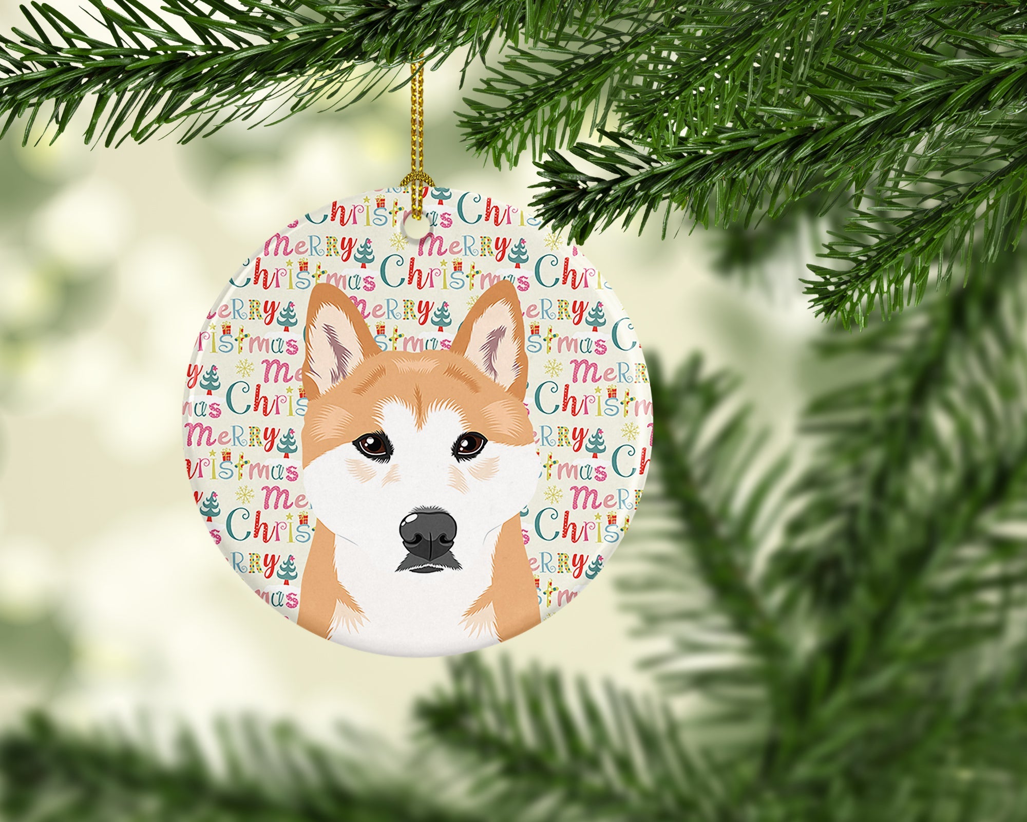 Decorate your space with our Christmas Shiba Inu artwork on a Ornament. Add a touch of personalized charm to your Christmas tree this holiday season with our Ceramic Ornament. Measuring 2.8125 inches in diameter, this round porcelain ornament beautifully reflects your festive lights, enhancing your holiday decor. The gloss surface sets off the vibrant, full-color artwork contributed by one of our talented artists, bringing a pop of color and joy to your tree. This Ceramic Ornament doesn't stop at being merely decorative. The white back is designed for personalization. Write a heartfelt message, mark a special year, or inscribe a date with a paint pen or a permanent marker to create a treasured memento. Please ensure you allow any personalization to dry thoroughly before handling to maintain the pristine finish. Included with the ornament is a delicate gold cord for easy hanging. Made in the USA, this Ceramic Ornament makes an exceptional gift for a pet sitter, teacher, family member, or anyone you wish to share a little Christmas magic with. With its blend of style, charm, and personal touch, it's a meaningful addition to any Christmas tree.