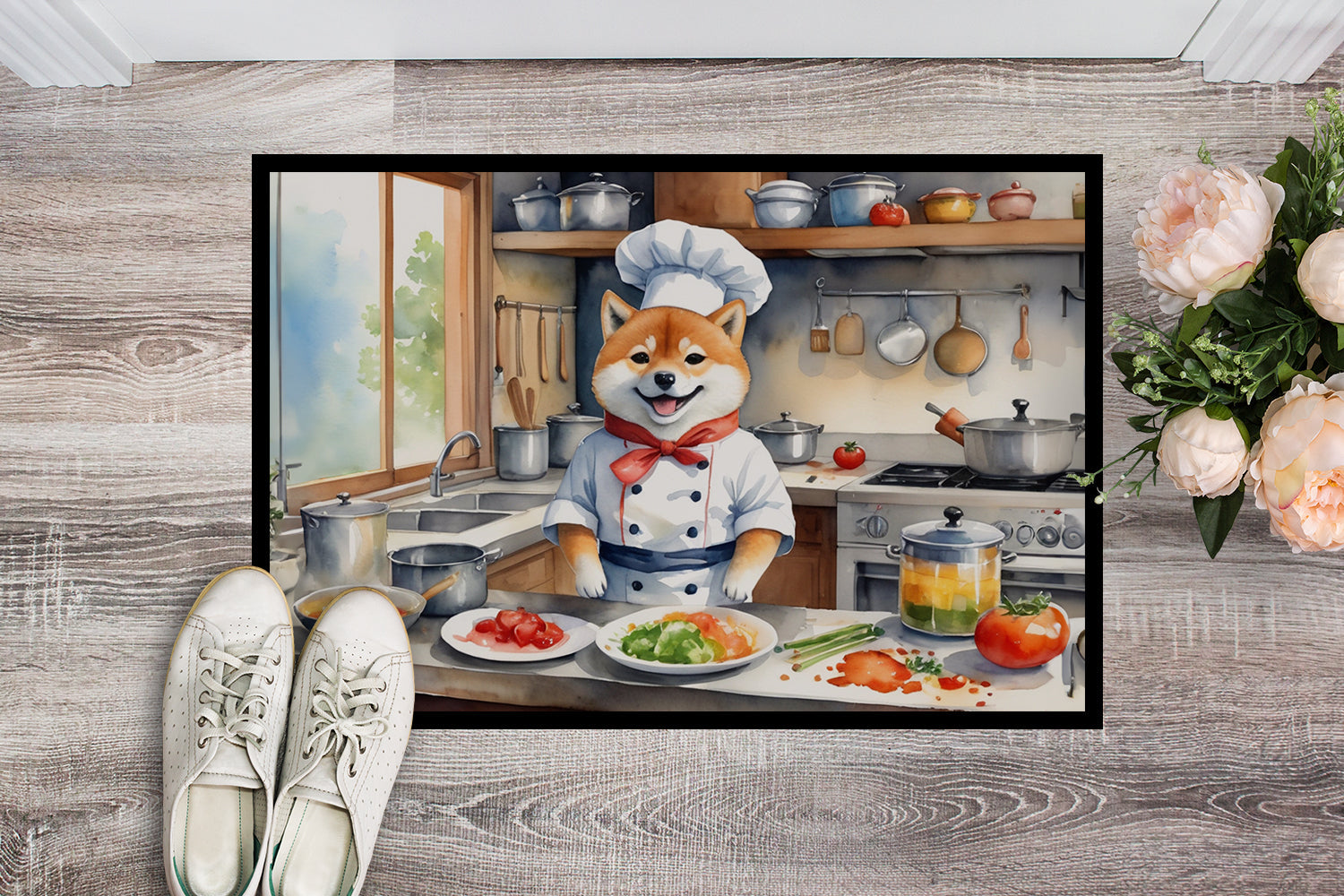 Decorate your space with our Shiba Inu artwork on a Doormat. Welcome your guests in style with our Artwork Door Mat, designed to withstand almost any weather condition. This mat, measuring approximately 24 by 36 inches, is held together by durable black binding tape. Its top layer, composed of polyester felt, is dyed with the eye-catching image you see on the mat. A few layers below provide the mat with stability, while its rubber bottom is stamped to help prevent slipping and ensures safety. Our mat works wonderfully as both an indoor or outdoor door mat. For cleaning, simply hose it off with water or use a power washer - no need for any cleaner that produces suds. Avoid scrubbing with a brush, instead, opt for the vacuum on floor setting. Designed manufactured and printed in the USA, this mat is a perfect addition to your porch, outdoor kitchen, entryway, or any indoor space. Its unique design makes it a charming decorative rug that greets your guests and adds a stylish touch to your home decor.