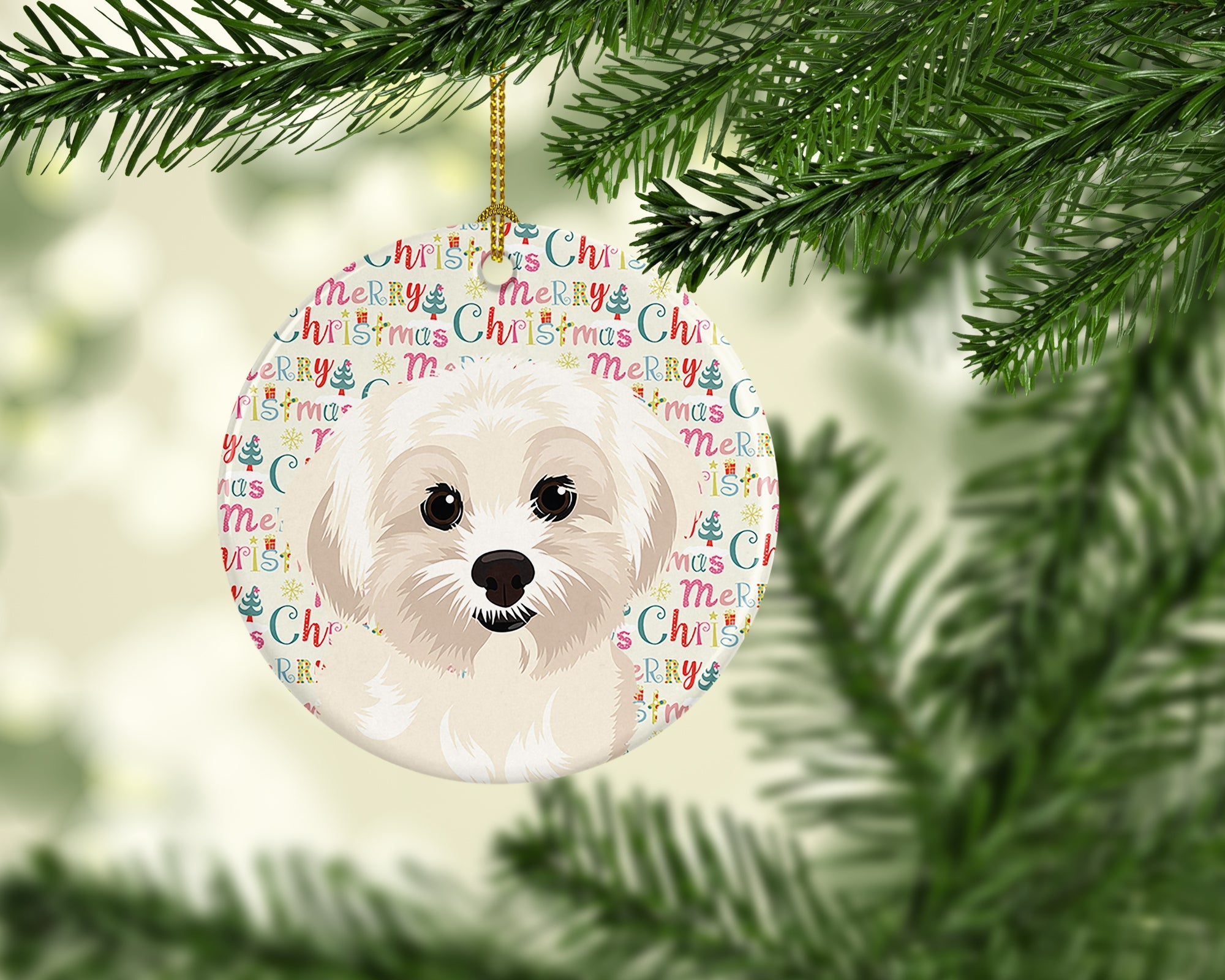 Decorate your space with our Christmas Shih Tzu artwork on a Ornament. Add a touch of personalized charm to your Christmas tree this holiday season with our Ceramic Ornament. Measuring 2.8125 inches in diameter, this round porcelain ornament beautifully reflects your festive lights, enhancing your holiday decor. The gloss surface sets off the vibrant, full-color artwork contributed by one of our talented artists, bringing a pop of color and joy to your tree. This Ceramic Ornament doesn't stop at being merely decorative. The white back is designed for personalization. Write a heartfelt message, mark a special year, or inscribe a date with a paint pen or a permanent marker to create a treasured memento. Please ensure you allow any personalization to dry thoroughly before handling to maintain the pristine finish. Included with the ornament is a delicate gold cord for easy hanging. Made in the USA, this Ceramic Ornament makes an exceptional gift for a pet sitter, teacher, family member, or anyone you wish to share a little Christmas magic with. With its blend of style, charm, and personal touch, it's a meaningful addition to any Christmas tree.