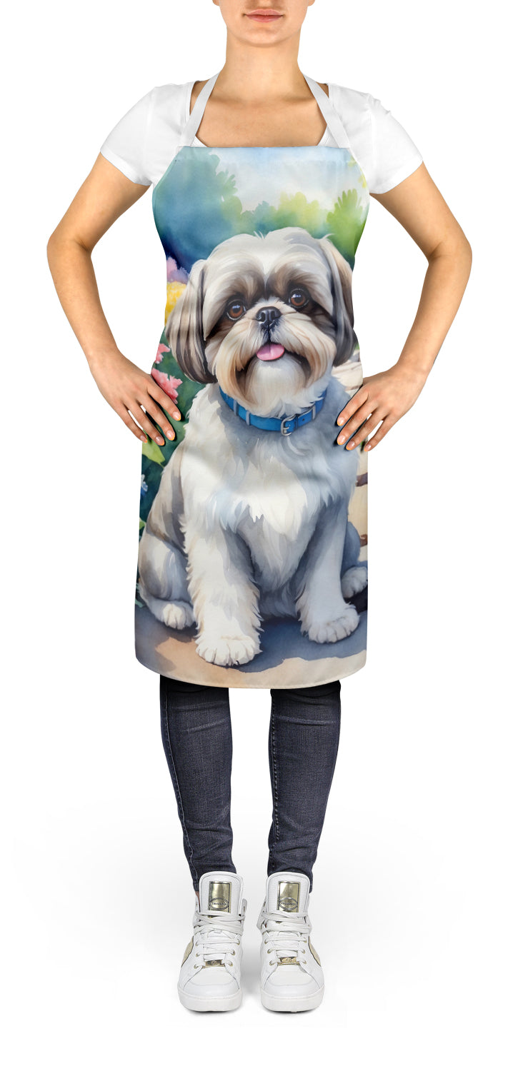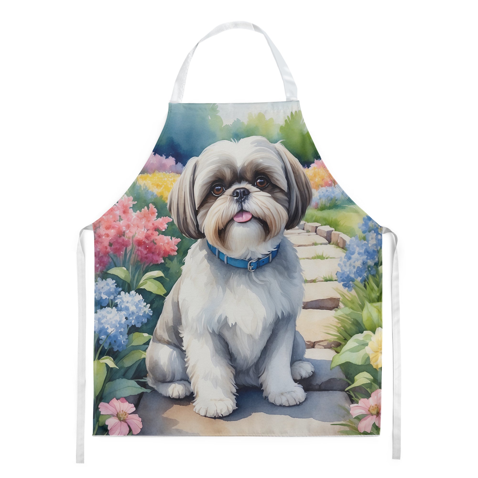 Decorate your space with our Shih Tzu artwork on a Apron. Bring a bit of Spring into your home with a Spring Apron. Elevate your cooking, baking, and grilling experiences with our versatile Kitchen or BBQ Apron. This Bib Style apron isn't just limited to culinary activities - it also serves as an excellent baking apron, artist apron, server apron, gardening apron, or even a dog grooming apron. The apron showcases vibrant full-color artwork contributed by one of our talented artists, bringing a dash of style to your daily tasks. With dimensions of approximately 27"W x 30"H, it provides ample coverage to protect your clothing from spills and splashes. Our apron is meticulously crafted from 100% Ultra Spun Polyester, known for its durability and lightweight nature. The apron comes with white tie straps, ensuring a comfortable and adjustable fit for all. It's a perfect choice for kitchen apron enthusiasts, whether you are a woman or a man. Designed for easy maintenance, this apron is fully machine washable. The quick-drying polyester material actively reduces staining, keeping your apron looking fresh and new for longer. Our beautifully designed apron isn't just a functional kitchen accessory - it's a fashion statement in the culinary world!