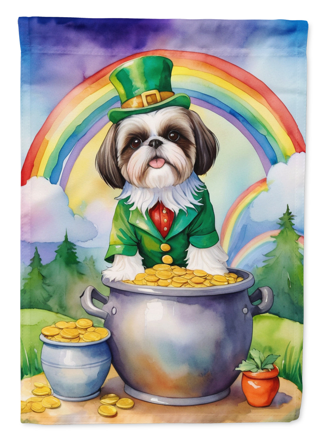 Shih Tzu St. Patrick’s Day Garden Flag – Dog with Pot of Gold & Rainbow Yard Decor
