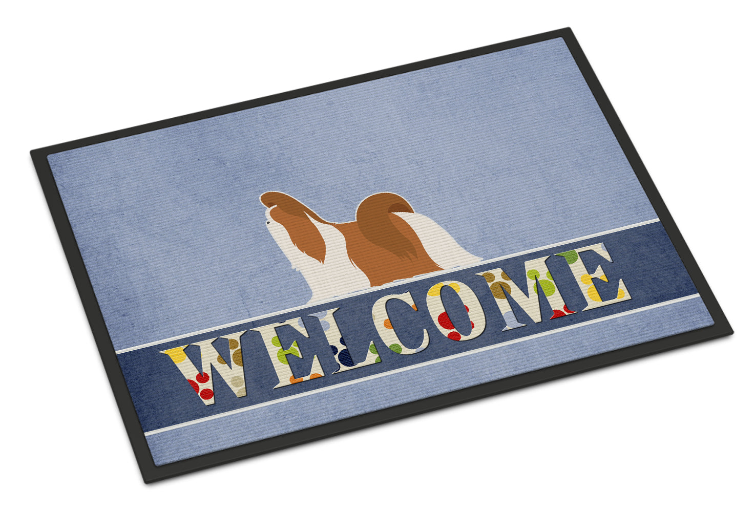 Decorate your space with our Shih Tzu artwork on a Doormat. Welcome your guests in style with our Artwork Door Mat, designed to withstand almost any weather condition. This mat, measuring approximately 18 by 27 inches, is held together by durable black binding tape. Its top layer, composed of polyester felt, is dyed with the eye-catching image you see on the mat. A few layers below provide the mat with stability, while its rubber bottom is stamped to help prevent slipping and ensures safety. Our mat works wonderfully as both an indoor or outdoor door mat. For cleaning, simply hose it off with water or use a power washer - no need for any cleaner that produces suds. Avoid scrubbing with a brush, instead, opt for the vacuum on floor setting. Designed manufactured and printed in the USA, this mat is a perfect addition to your porch, outdoor kitchen, entryway, or any indoor space. Its unique design makes it a charming decorative rug that greets your guests and adds a stylish touch to your home decor.